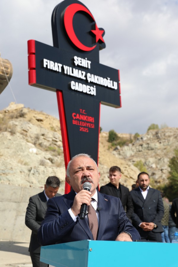 Esen, “Şehit Fırat Yılmaz Çakıroğlu ismi ile şehrimizin kalbini birbirine bağlayan bu cadde, temsil ettiği gençliğin dinamizmi, bilimin ışığı ve Fırat Yılmaz Çakıroğlu’nun gençlik ideali ile büyük bir anlam kazanmıştır. Şehidimizin ismini bir tabelaya isim yazarak yaşatmak değil bizimkisi. O ismi, kalbimizdeki minnetle, gençlerimizin zihnindeki hedeflerle, milletimizin vicdanındaki vefa ile taşımaktır. Biz de Çankırı Belediyesi olarak bu bilinçle hareket etmek, vatanına, milletine, bayrağına sevdalı bir evladımızın hatırasını yaşatmak istedik. Böylesine bir evladı yetiştiren kıymetli ailesine de hepinizin huzurunda şükranlarımı sunuyor, sabır, metanet ve gurur dolu bir ömür diliyorum. Şehidimizin ruhu şad, mekânı cennet olsun.” dedi.