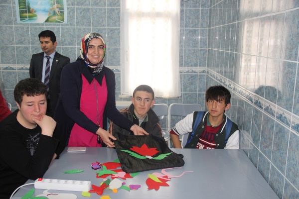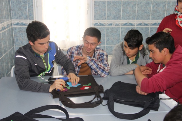 Proje kapsamında lise öğrencileri, öğretmenler ve belediye çalışanları Vali Ayhan Çevik Özel Eğitim Uygulama Merkezi'ndeki engelli öğrenciler ile çanta yaptı.
