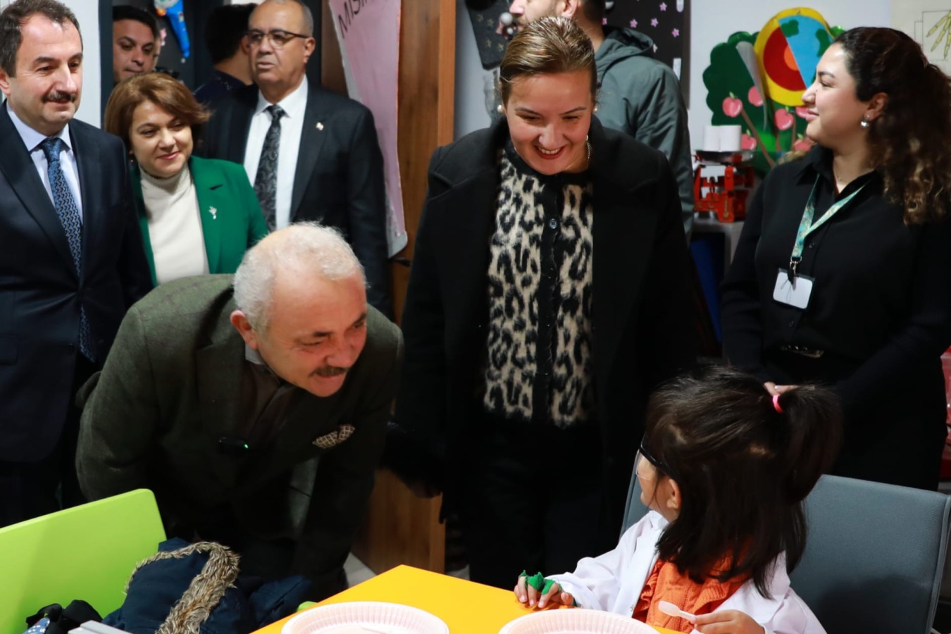 Kutu oyunlarını başarılı bir şekilde tamamlayan çocuklar, ritim ve tuz seramik çalışmaları da gerçekleştirdi. Müzik atölyesinde vurmalı çalgılarla şarkıya ritim tutan öğrencilere Başkan Esen de eşlik etti.