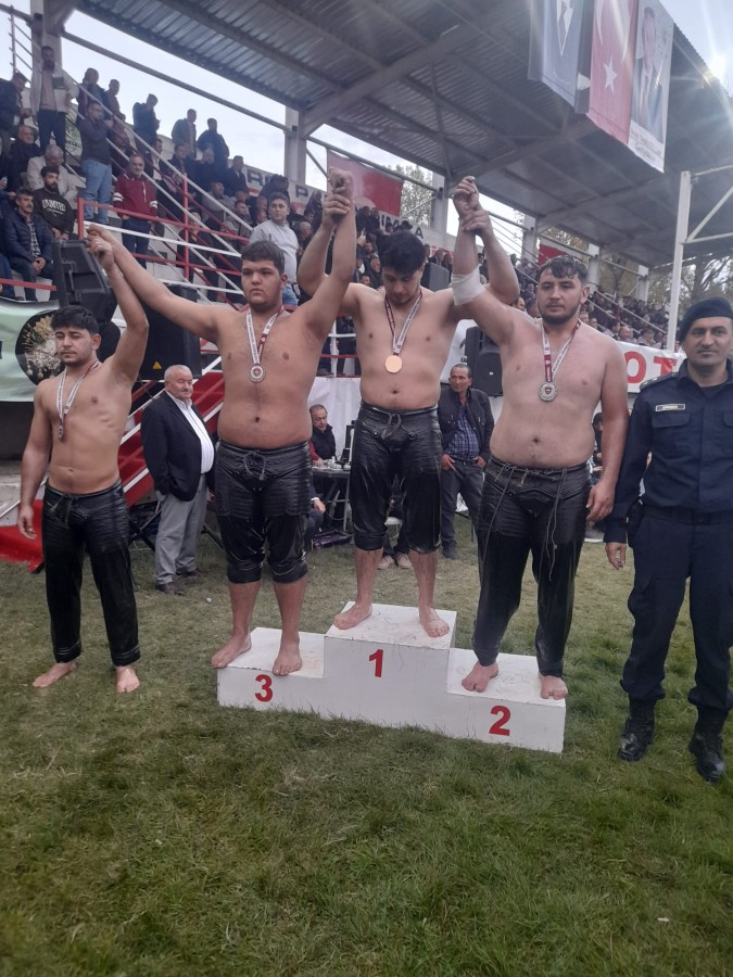 Çankırı Belediyespor Kulübü güreşçileri, Türkiye’nin dört bir yanından yaklaşık 600 pehlivanın er meydanında hünerlerini sergilediği Çorum Kargı Panayırı Yağlı Güreşleri’nde dört madalyayı evine getirdi.