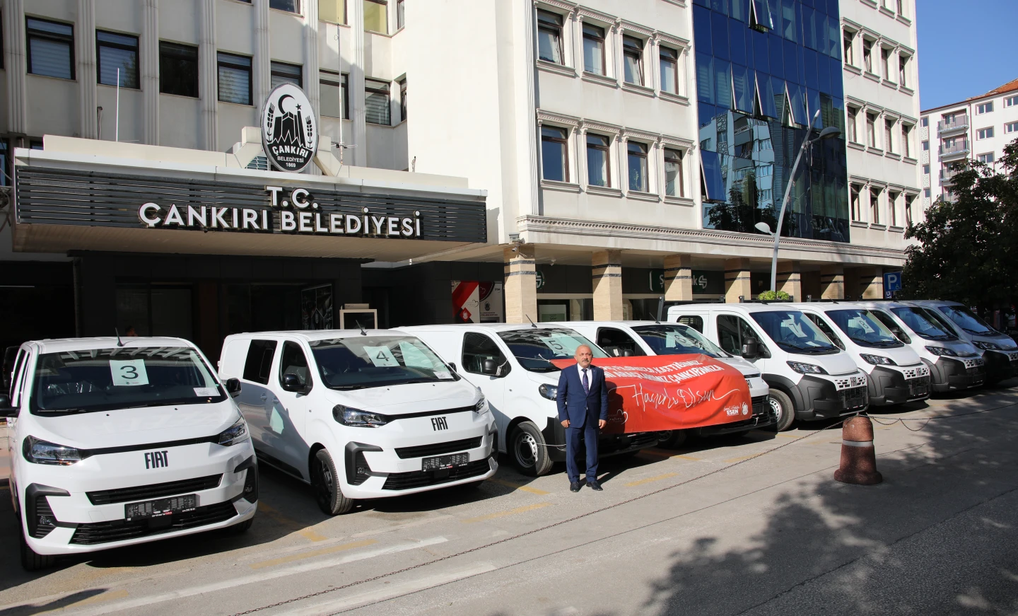 Çankırı Belediyesi, aldığı on yeni aracı halka tanıttı. 4 adet çift kabin pikap, 2 adet panelvan hizmet aracı, 2 adet panelvan cenaze aracı ile 2 adet otomobil olmak üzere on yeni araç, belediyenin araç filosunda yerini aldı. Başkan Esen, “Halkımıza hayırlı ve uğurlu olsun.” dedi.