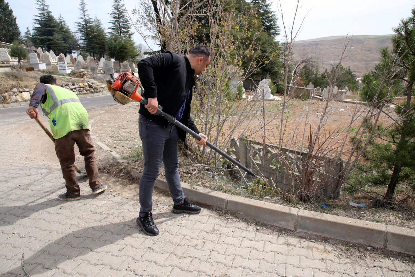 Sarıbaba ve Esentepe Mezarlıkları ile yeni mezarlık alanını vahşi otlardan arındırmaya başlayan ekipler, Arife günü öncesi mezarlık temizliğini tamamlayacak. Kabir ziyaretlerinin rahat ve kolay bir biçimde yapılabilmesi için ara bağlantı yollar iyileştirildi, ulaşımı sıkıntıya sokan ağaçlar ise budandı. Sarıbaba Mezarlığının ana girişinde ise kemerli kapı yapımına başlandı.
