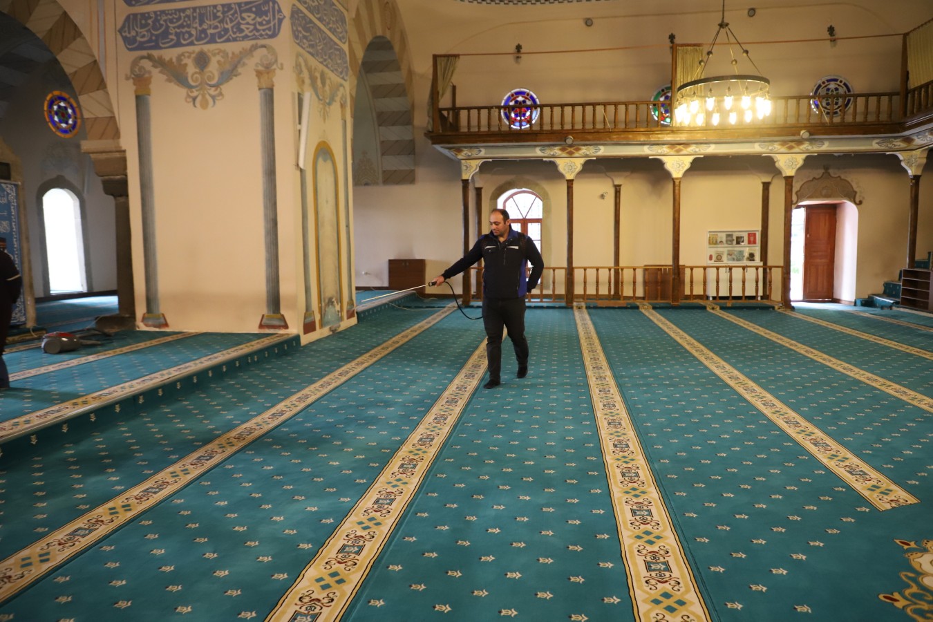 Temizlik İşleri Müdürlüğüne bağlı ilaçlama ekiplerinin mesaisi bu kez camilerde başladı. Sabahın beşinde başlayan temizlik çalışmaları şehir merkezindeki tüm camiler tamamlanana kadar devam etti. Temizlik çalışmalarının ardından tüm camilere gül suyu da sıkıldı.