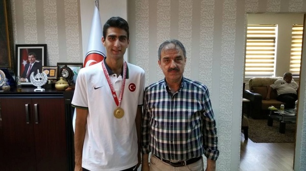 Başkan Dinç daha sonra başarılı genç sporcuyu altınla ödüllendirdi.