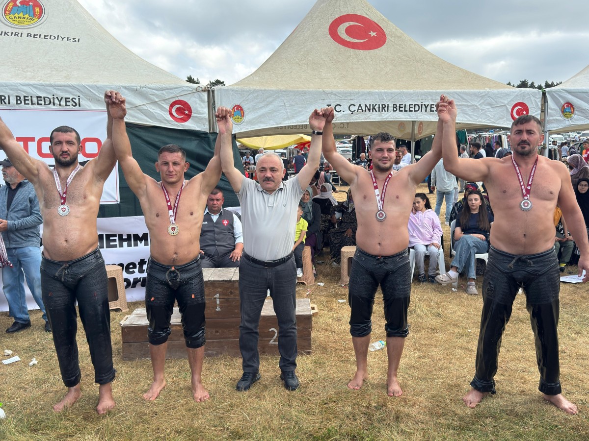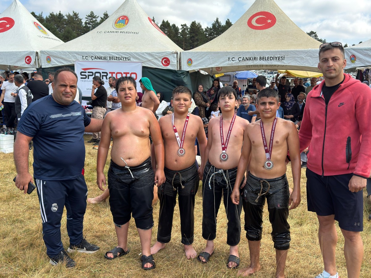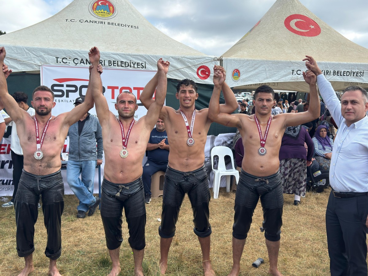 Çankırı BelediyeSpor Kulübü Güreş takımı, bu yıl 48.si düzenlenen Yapraklı Yağlı Güreşleri’nden 10 madalya ile döndü. Başaltı Boyda Kadir Güleşen, Küçük Orta Küçük Boyda Hasan Güleşen, Tozkoparanda Recep Armağan birinci olurken Hidayet Memiş Deste Büyük Boyda, Ertuğ Özler Teşvik Bir Boyda, Murat Koysu ise Teşvik İki Boyda ikinci oldu. Güreşçilerimizden Mustafa Karadeniz Ayak Boyda 3. olurken Buğra Umut Özkan ve Berat Mirza Karaman ise Teşvik Boyda üçüncülüğü elde ederek kulübüne bronz madalya kazandırdı.