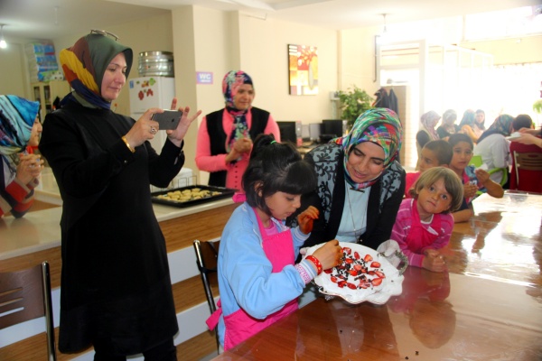 Aşçı önlükleri giyerek işe koyulan özel eğitimli çocuklar, öğretmenleri ve belediye personelleri ile birlikte susamlı simit, kurabiye ve yaş pasta yapmanın keyfini yaşadılar. Öğrenciler, pasta yapımında gösterdikleri beceri ve performansla pasta şefi olmaya hak kazandılar. Şefler, pasta yaparken, hem el becerilerini geliştirdiler hem de eğlenceli dakikalar geçirdiler.