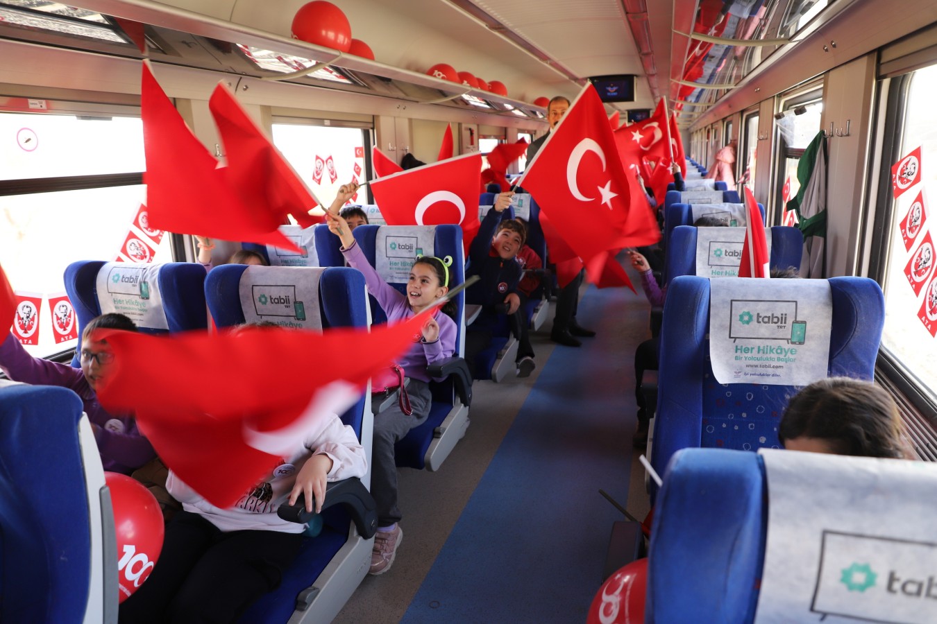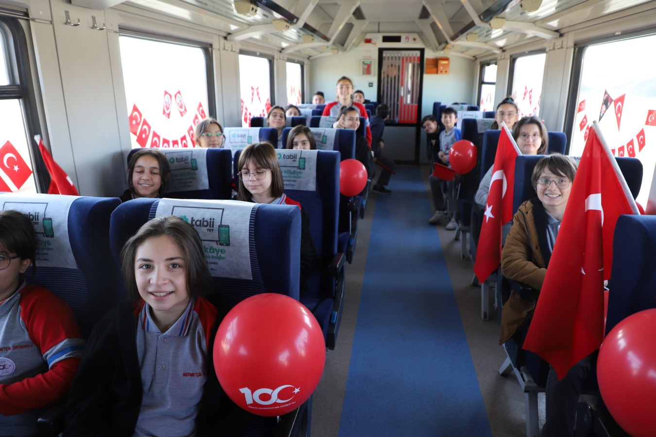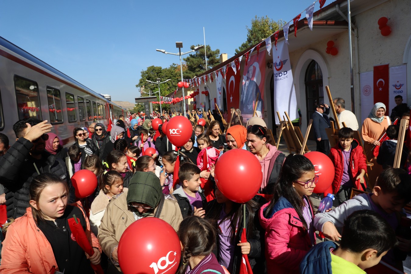 Çankırı, Cumhuriyetin 100. yılına sıkı bir giriş yaptı. Tarihten kültüre, sanattan spora, tarımdan sanayiye, gelenekselden moderne, basın yayından turizme kadar geniş bir yelpazede yürütülen “100. Yılda 100 Etkinlik” projesinin çocuklara faaliyetleri de göz dolduruyor. Çocukların Cumhuriyet Vals gösterisinin ardından 100. Yıl Cumhuriyet Treni de çocuklarda büyük coşku yarattı. Sabah saatlerinde Germece’den kalkan Cumhuriyet Treni, 360 çocuğa bayram coşkusu yaşattı. Öğretmenleri eşliğinde, içi dışı ile ay yıldızlı bayraklarla süslenmiş trene binen öğrenciler, ellerinde Türk bayrakları ile marşlar söyledi. Çocukların renkli görüntüleri, basın mensuplarının karelerine de yansıdı. Çankırı Garı’na yaklaşan tren, düdüğünü bu kez Cumhuriyetin 100. yılı için çaldı. Çocukları tren garında aynı heyecan ve coşku ile aileleri karşıladı.