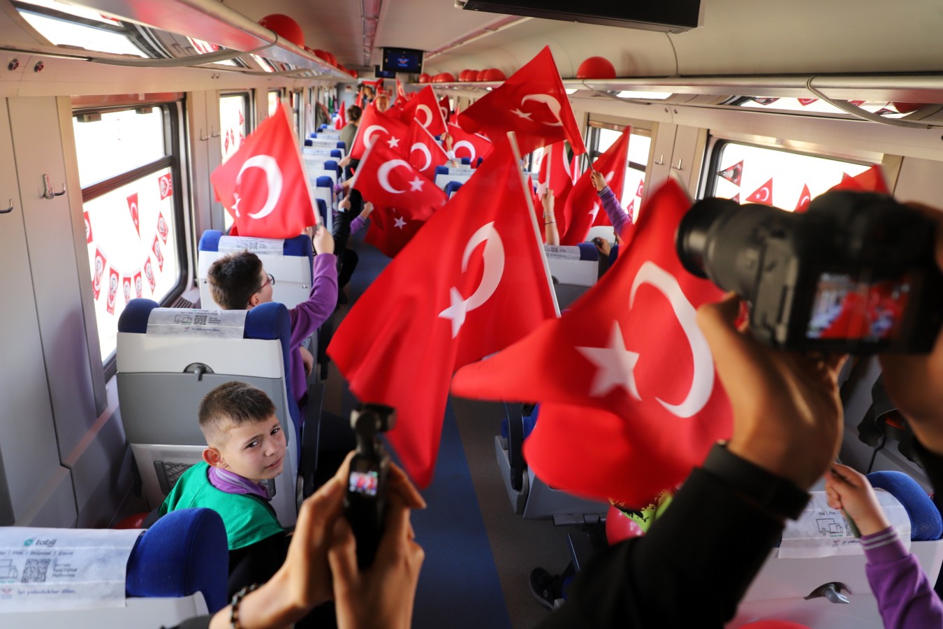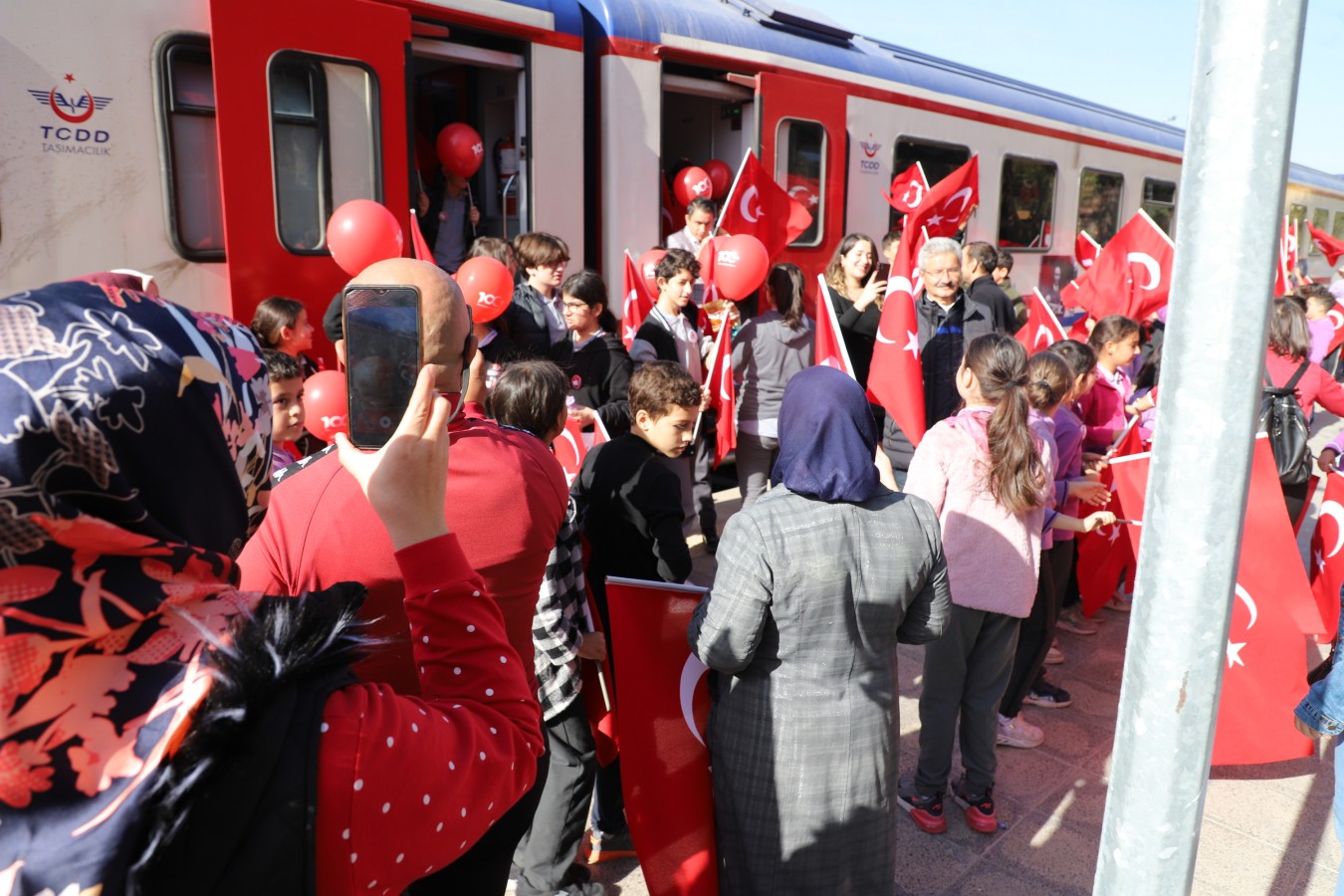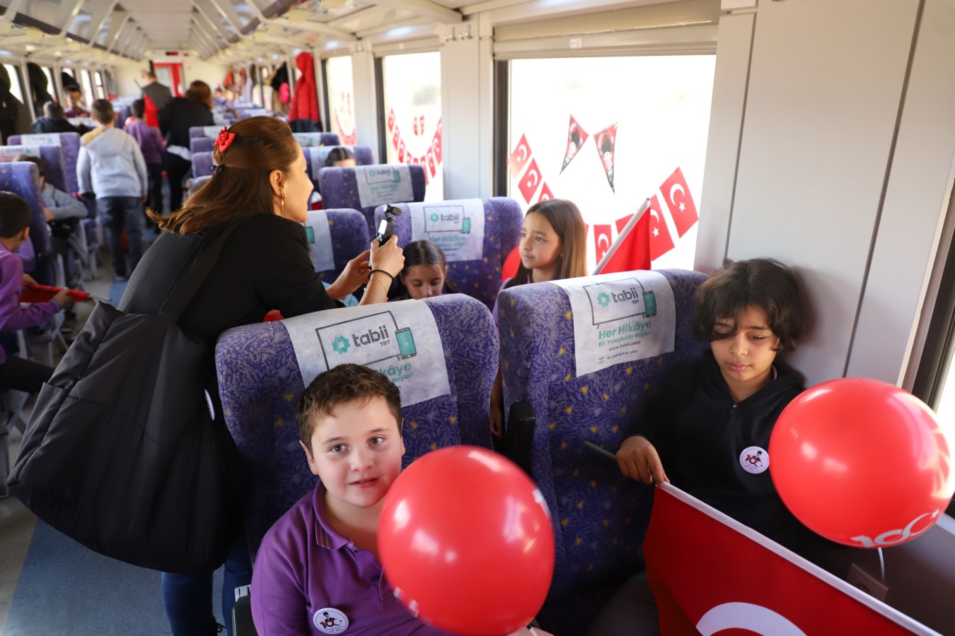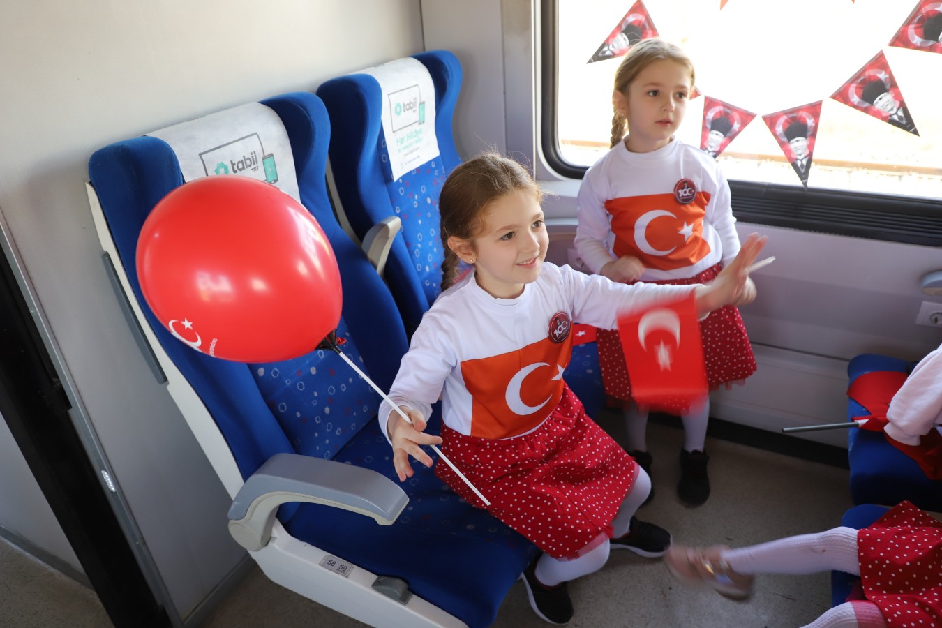 Çankırı, Cumhuriyetin 100. yılına sıkı bir giriş yaptı. Tarihten kültüre, sanattan spora, tarımdan sanayiye, gelenekselden moderne, basın yayından turizme kadar geniş bir yelpazede yürütülen “100. Yılda 100 Etkinlik” projesinin çocuklara faaliyetleri de göz dolduruyor. Çocukların Cumhuriyet Vals gösterisinin ardından 100. Yıl Cumhuriyet Treni de çocuklarda büyük coşku yarattı. Sabah saatlerinde Germece’den kalkan Cumhuriyet Treni, 360 çocuğa bayram coşkusu yaşattı. Öğretmenleri eşliğinde, içi dışı ile ay yıldızlı bayraklarla süslenmiş trene binen öğrenciler, ellerinde Türk bayrakları ile marşlar söyledi. Çocukların renkli görüntüleri, basın mensuplarının karelerine de yansıdı. Çankırı Garı’na yaklaşan tren, düdüğünü bu kez Cumhuriyetin 100. yılı için çaldı. Çocukları tren garında aynı heyecan ve coşku ile aileleri karşıladı.