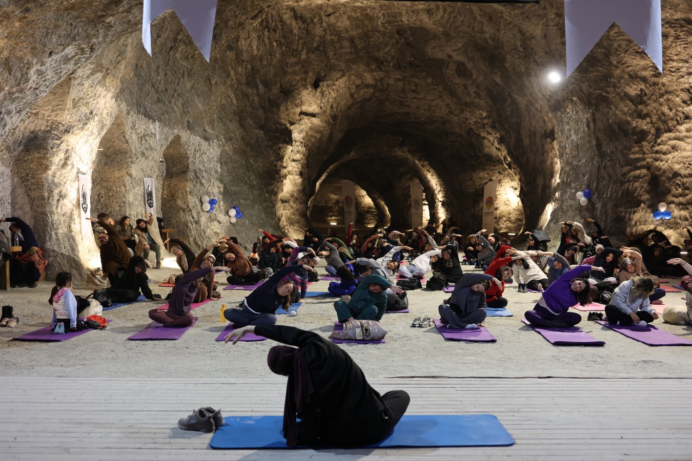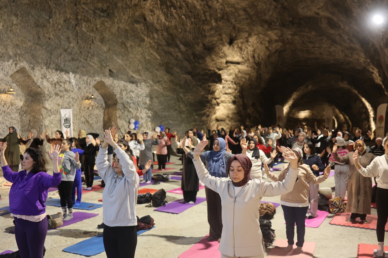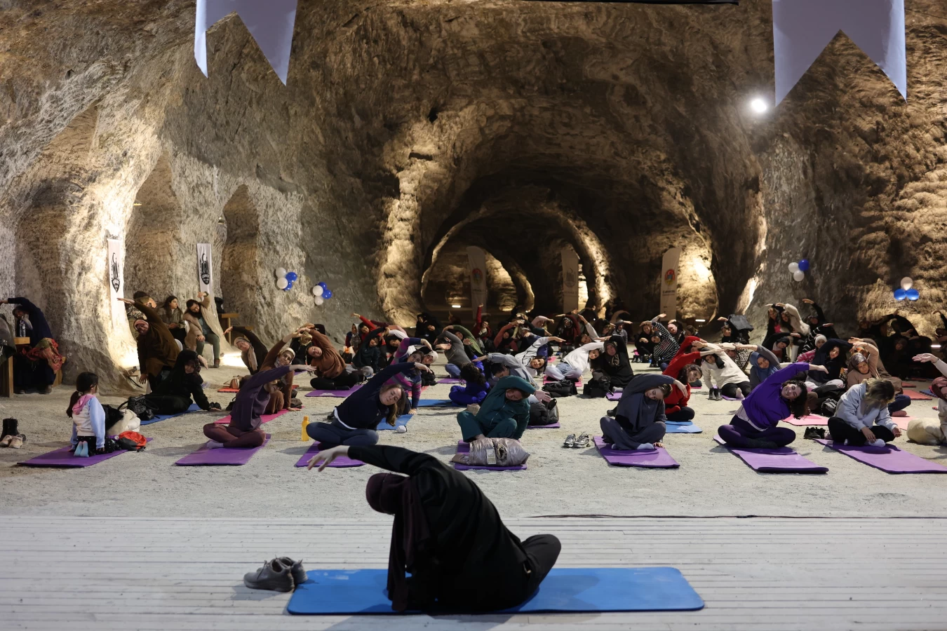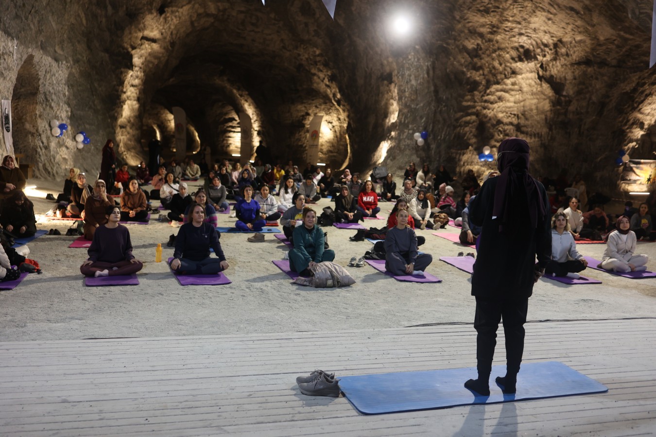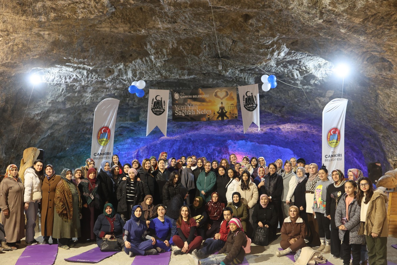 Çankırı Belediyesi Yer Altı Tuz Şehri, nefes egzersizlerinin ikinci etkinliğine ev sahipliği yaptı. Rengârenk matları ile Tuz Mağarasının şifasından faydalanmak isteyen Çankırılı kadınlar, 2024 senesini sağlıklı bir nefes ile tamamladı. Etkinlik, yine kadınlardan tam puan aldı.