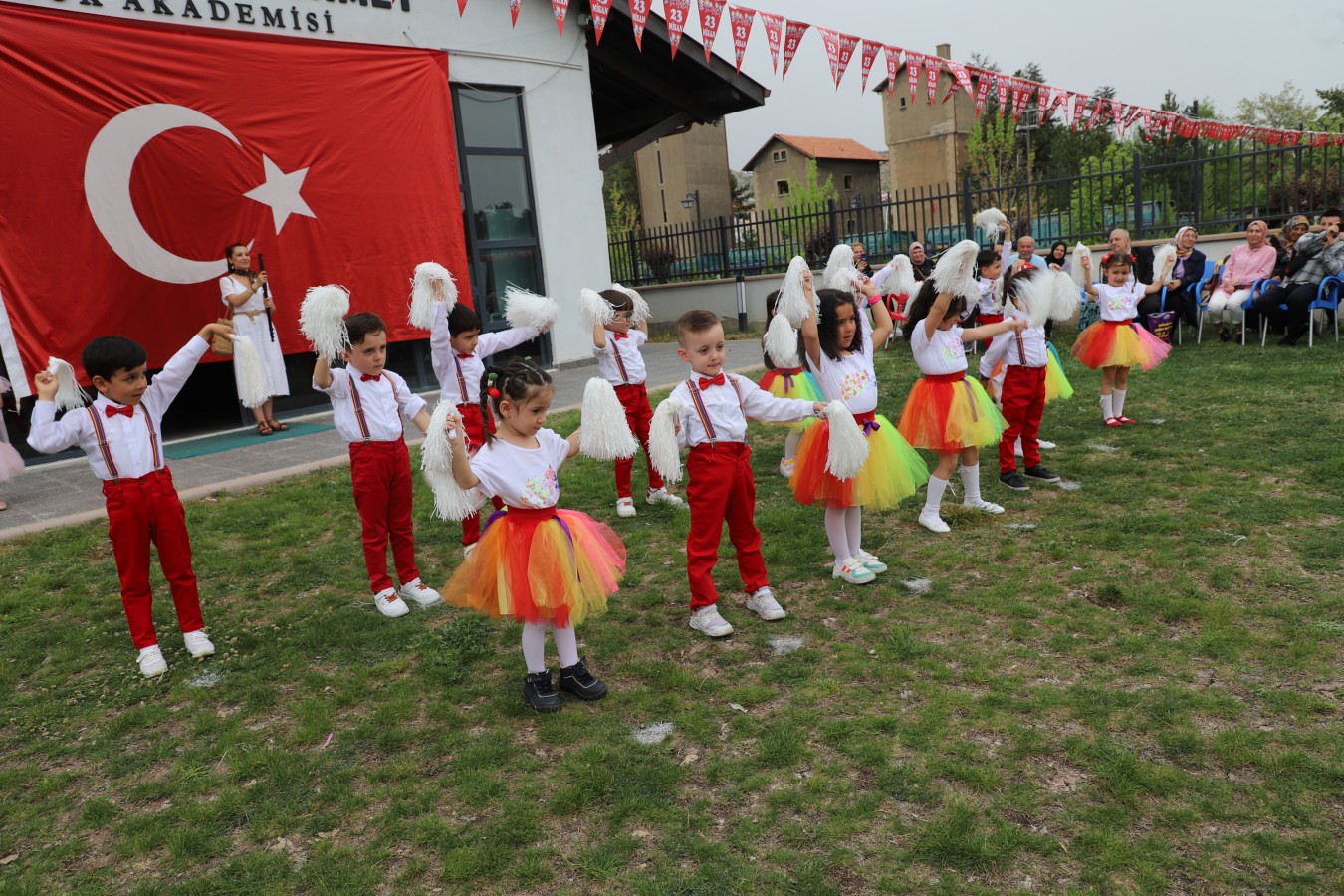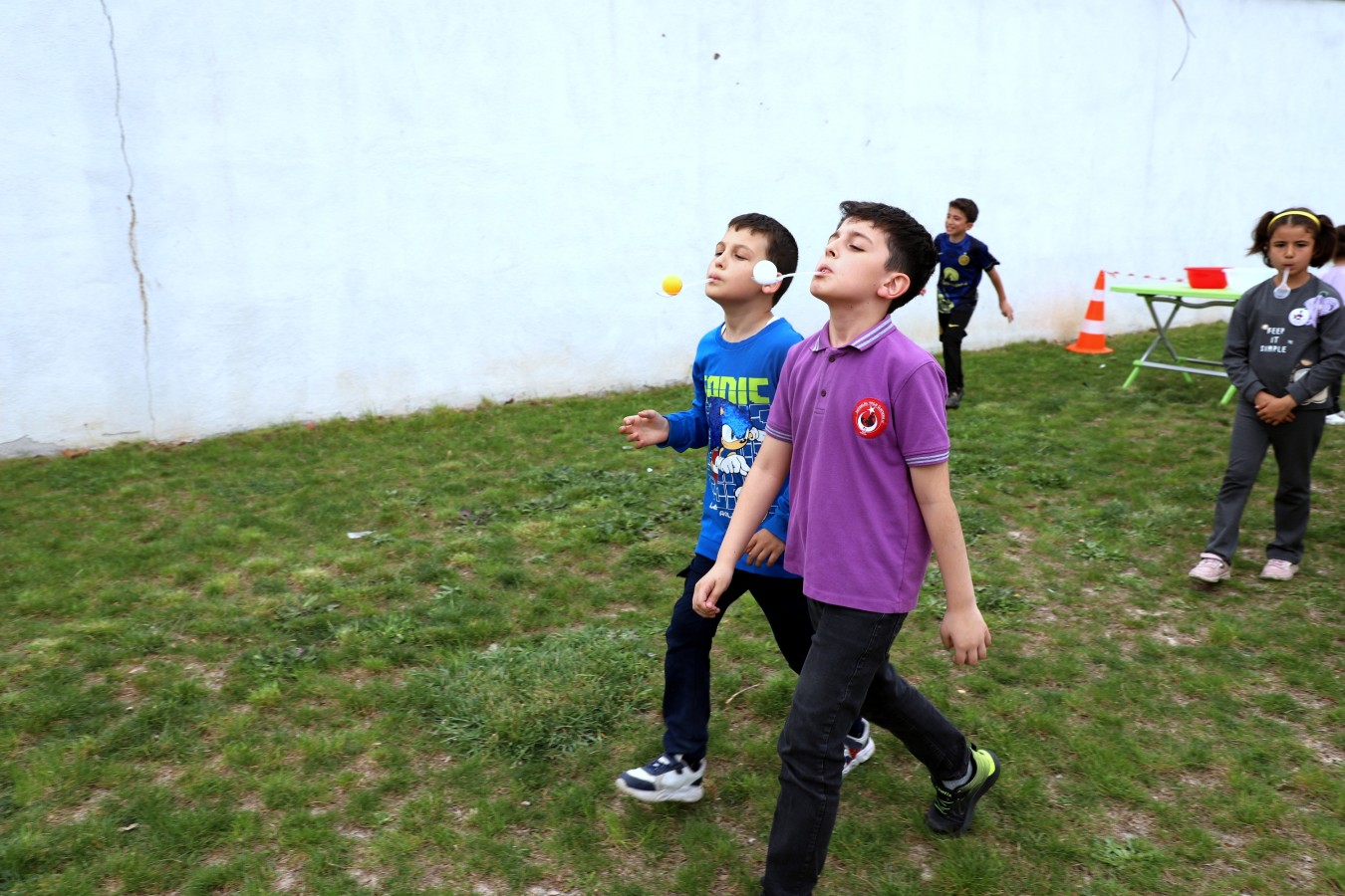 Bir tarafta ağızlarında tuttukları kaşıklarla yumurta taşıdılar, bir tarafta mendil saklamaca ve kapmaca oynadılar, bir tarafta sünger ile su taşırken bir tarafta da çuvalla yarıştılar. FSM Çocuk Akademisi kış atölyelerine katılan öğrenciler, 23 Nisan Ulusal Egemenlik ve Çocuk Bayramı’nın 104. yıl kutlamalarına akademi bahçesinde devam etti. Ellerine Türk bayrakları alan çocuklar, giydikleri rengârenk kıyafetler ile alanı gökkuşağına çevirdi. Yöresel çocuk oyunlarında kıyasıya yarışan öğrenciler, kendilerine hediye edilen bayramı coşku ile kutladı.