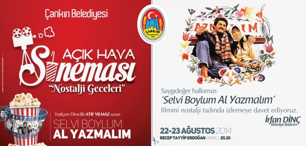Recep Tayyip Erdoğan Parkı'nda 23-24 Ağustos günleri gerçekleşecek olan açık hava sinemasının ilk seansında  unutulmaz yeşilçam klasikleri arasında yer alan "Selvi Boylum Al Yazmalım" filmi oynatılacak.