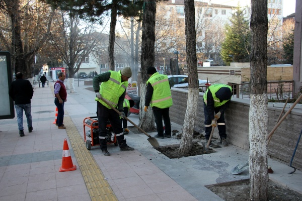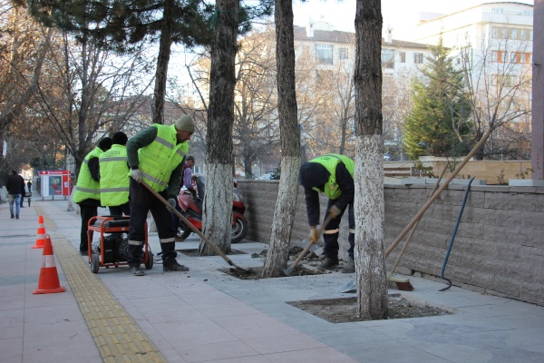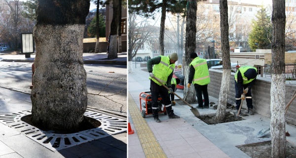 Belediye Park ve Bahçeler Müdürlüğü ekiplerince yürütülen çalışmalarda, ağaç diplerinin daha estetik görünmesi sağlanırken ağaç diplerinde oluşan su birikintilerinin ve atıkların da önüne geçilecek.
