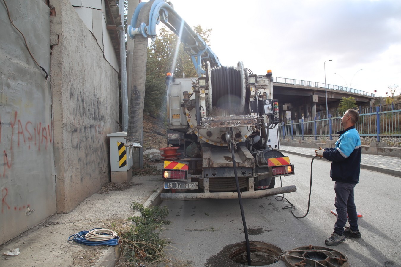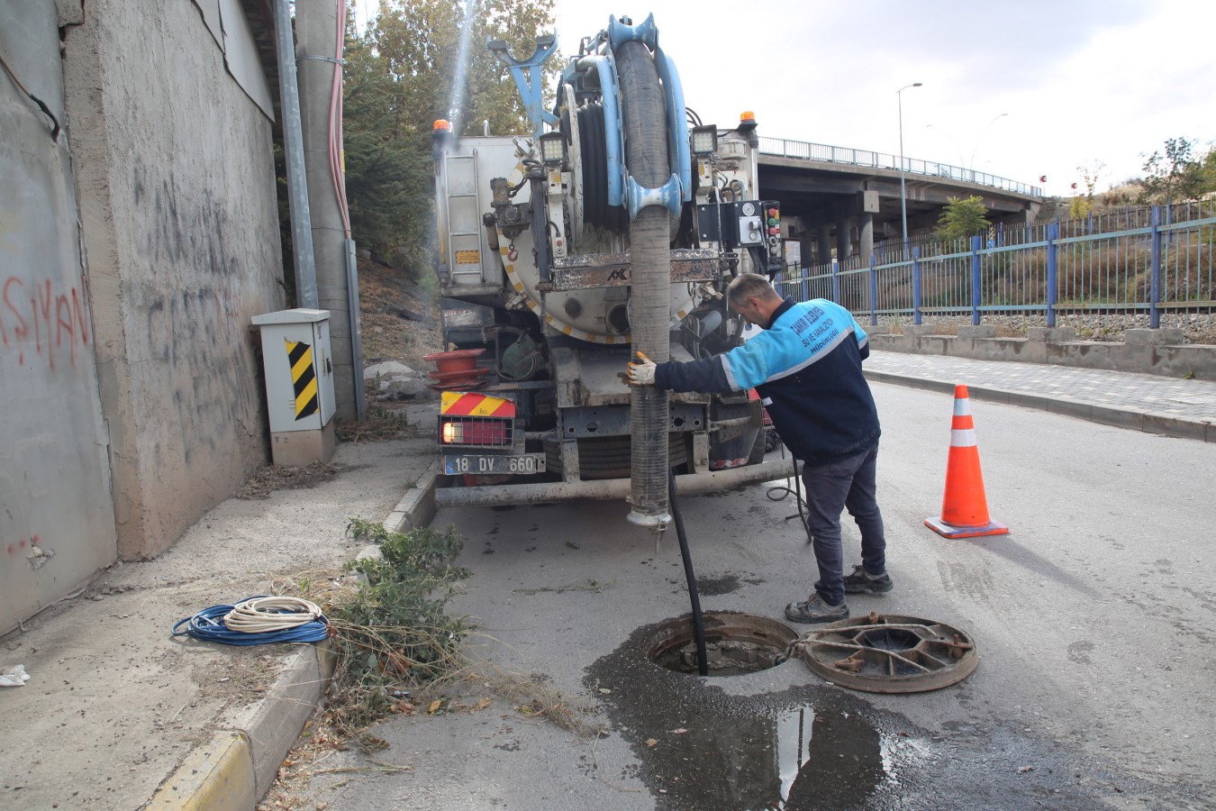 Kış mevsiminin gelmesi ile birlikte yağmur suyu hatlarında temizlik çalışması başladı. Çankırı Belediyesi Su ve Kanalizasyon Müdürlüğüne bağlı ekipler, yağış sonrası oluşabilecek su birikintilerine karşı önlem almak için yağmur suyu ve kanalizasyon hatlarını biriken rüsubat ve diğer malzemelerden arındırıyor.