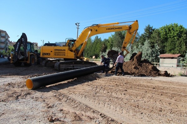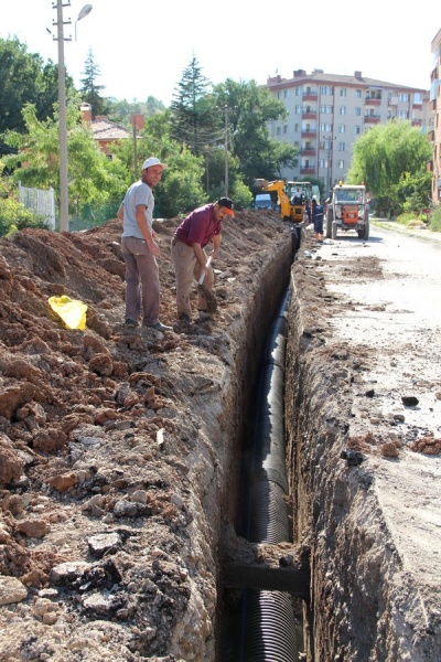 Çalışmalar kapsamında, 500- 400 –300 mm çapında HDPE Koruge borularla yağmurlama çalışmaları yapılırken, Fuar Yolu devamı, Tatar Sokak, Bahçelievler civarı, Ankara Yolu üzerindeki sorunlu bölgeler, eski hastane çevresindeki altyapı sorunu olan bölgelerde ihale yapılmış olup önümüzdeki günlerde 800-600 mm lik borularla bölgenin altyapı sorunu çözüme kavuşturulmuş olacak.