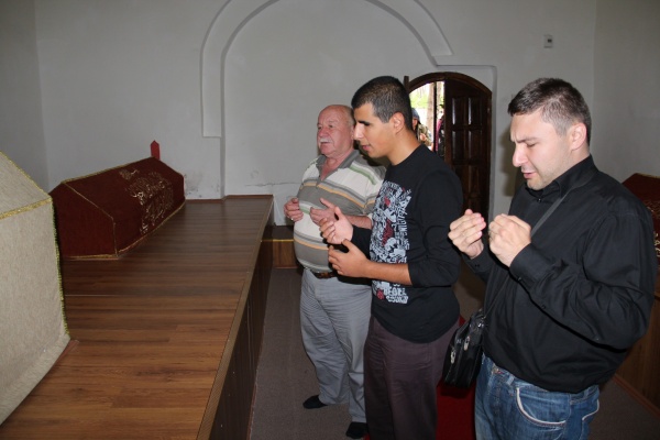 Çankırı Belediye Başkanı İrfan Dinç medresede heyettekilerle buluşurken, ipek kozasından yapılma el ürünleri hediye etti.
