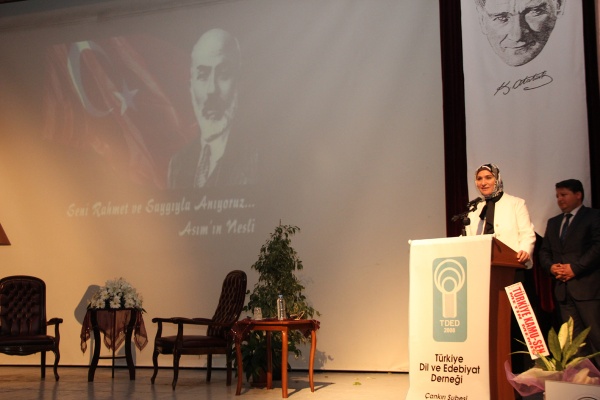 100. Yıl Kültür Merkezi’nde Çankırı Karatekin Üniversitesi Edebiyat Fakültesi öğretim üyesi Yrd. Doç. Dr. İbrahim Akyol’un moderatörlüğünde gerçekleşen söyleşide İstiklal Marşımızın şairi Mehmet Akif Ersoy’un torunu Selma Argon, tarafından milli şairimizin bilinmeyen yönleri ve özel anıları katılımcılarla paylaşıldı.