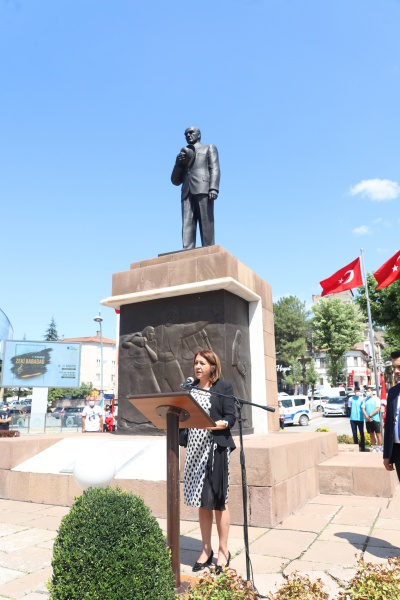 Çankırı Belediye Başkan Vekili Özlem Demirci, İstiklal Yolunun ve Şapka İnkılabının önemli noktalarından biri olan komşumuz Kastamonu’da meydana gelen sel felaketinde yitirdiğimiz vatandaşlara Allah’tan rahmet, ailelerine baş sağlığı dileyerek başladığı konuşmasında Atatürk’ün gerçekleştirdiği yurt gezisinin ziyaretlerden öte, bir zihniyet devriminin yapılması, bu düşünce yapısının tüm dinamikleri ile halka doğru anlatılması için düzenlenmiş ve milliyetçi unsurlar ile bezenmiş bir gezi olduğunu söyledi. Demirci, “Bu gezinin her durağında halkın desteğini almayı başarmış bir lidere Çankırı halkı da en büyük desteği vermiş ve Atatürk’ün kurduğu Türkiye Cumhuriyeti Devletinin ve Atatürk’ün ilke ve inkılaplarının savunucusu olmuştur. Nitekim Büyük Önder Atatürk, milletin onay vermeyeceği hiçbir düşüncenin kalıcı olmayacağını o gün Çankırı halkına yaptığı konuşmasında bir kez daha vurgulamıştır. Atatürk, elinde panama şapkası ile halkın nabzını ölçmüş ve diğer reformlara zemin hazırlamıştır.” Dedi.
