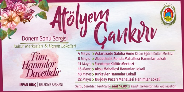 Çankırı Belediyesi bünyesinde farklı alanlarda eğitim alan kursiyerlerin el emeği göz nuru ürünleri yılsonu sergisi ile Çankırılılarla buluşacak. Kadın kursiyerlerin çalışmalarından oluşan sergi, “Atölyem Çankırı” adı ile 4–22 Mayıs tarihleri arasını kapsayacak.