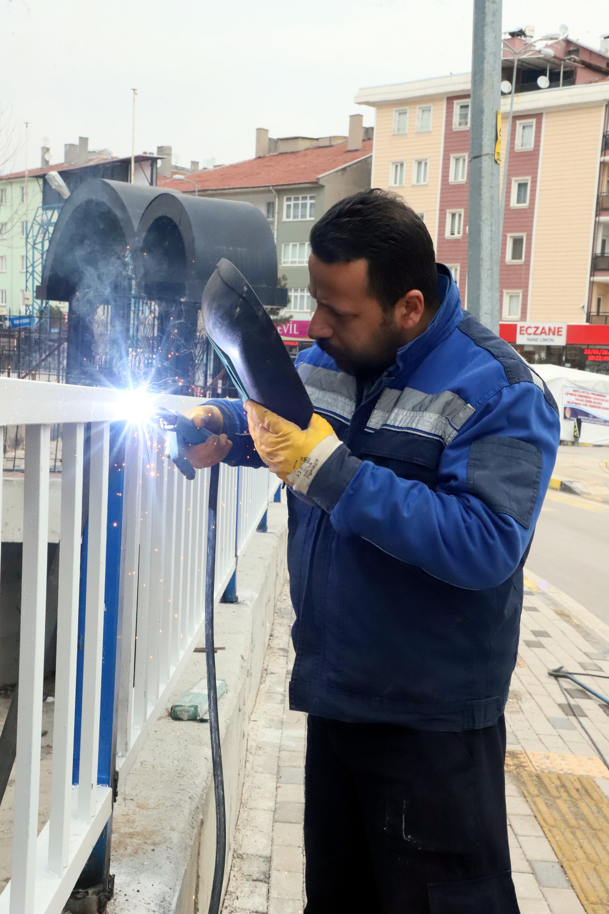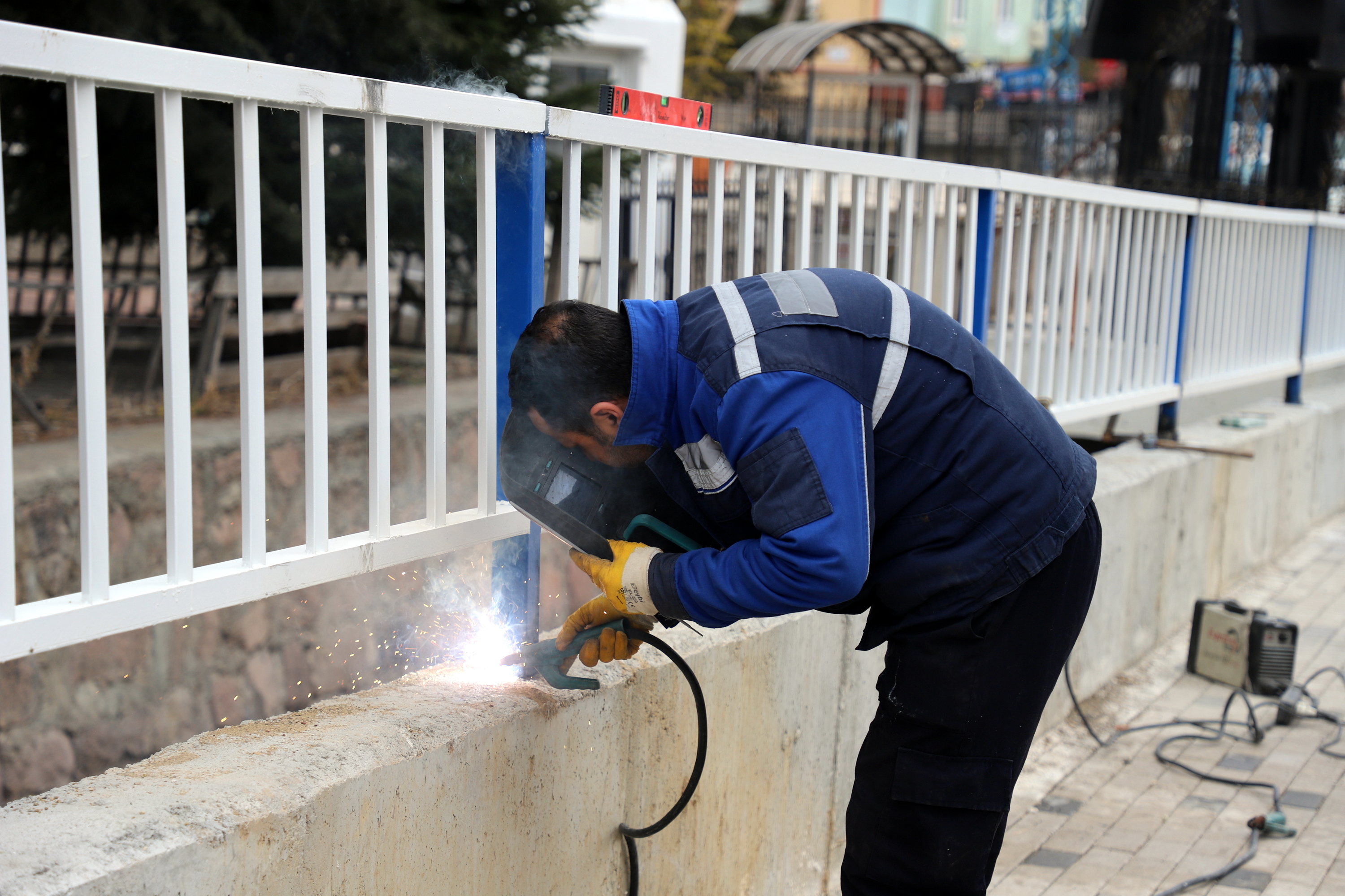 Geçtiğimiz yıl içerisinde Yenimahalle Yunus Emre Caddesi’nde bulunan Bademlik Deresi’ne 420 metre uzunluğunda kapalı menfez ve açık kanal yaparak dere ıslah çalışması gerçekleştirilmişti. Bölgede devam eden çalışmalar kapsamında; derenin kenar korkuluklarının montaj çalışmaları da başladı. Makine İkmal Bakım ve Onarım Müdürlüğü atölyesinde yapılan mavi beyaz korkuluklar, vatandaşın güvenliğinin sağlanması içi dere kenarına monte ediliyor.