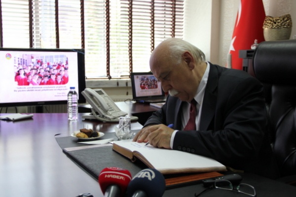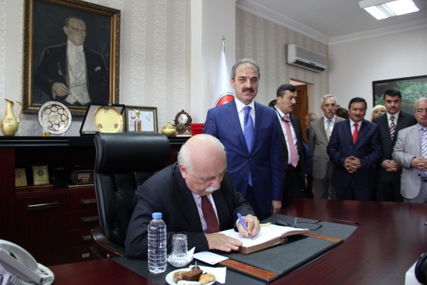 Belediyenin şeref defterini de imzalayan Bakan Avcı’ya Belediye Başkanı İrfan Dinç tarafından üzerinde resmi bulunan tuz lambası ile belediye kültür yayınlarından oluşan bir kitap seti hediye edildi.