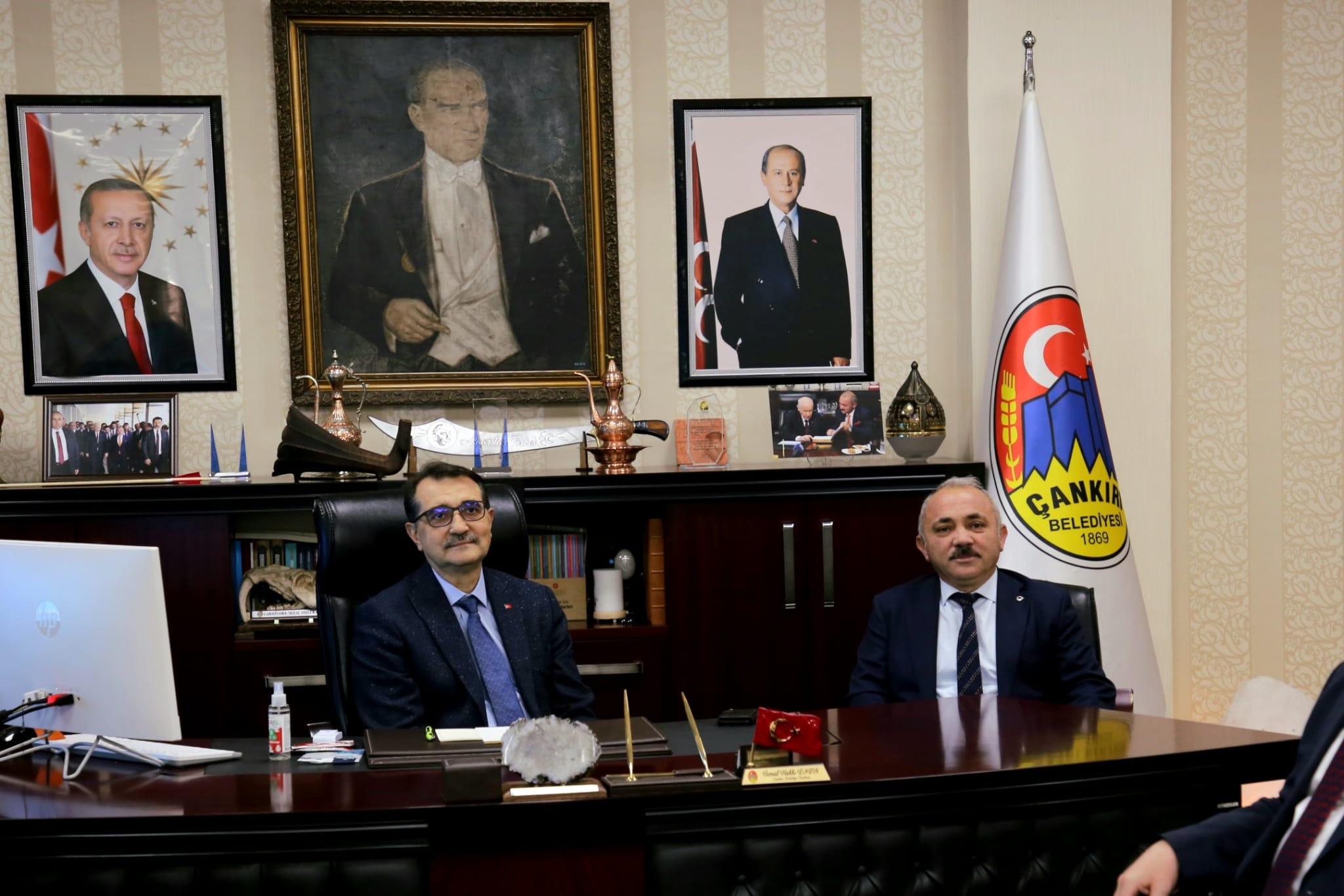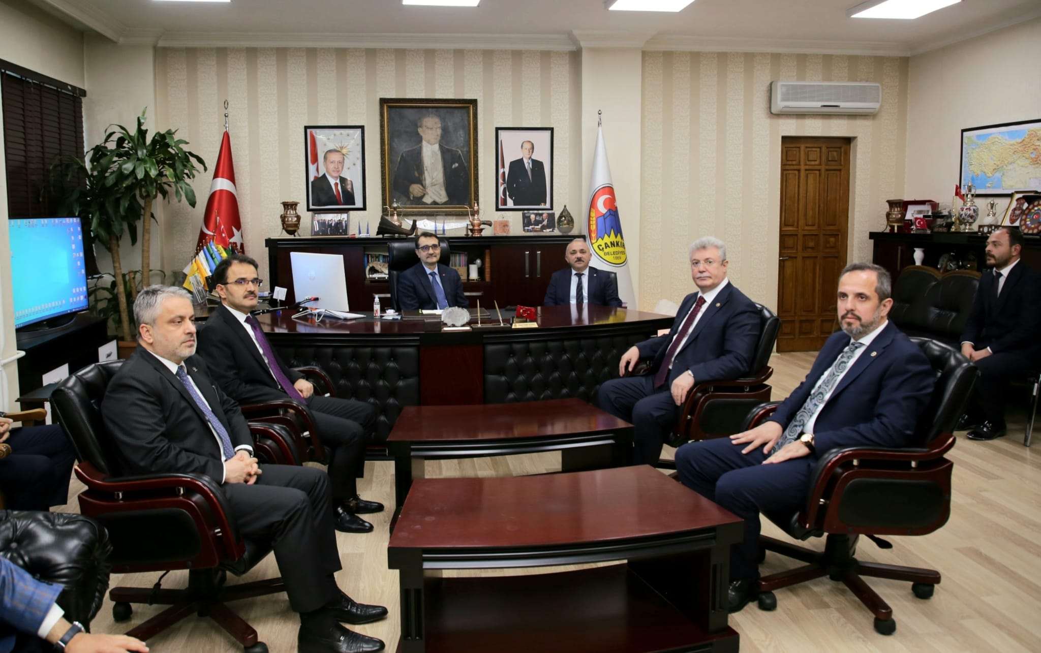 Çankırı’yı ziyarete gelen Enerji ve Tabii Kaynaklar Bakanı Fatih Dönmez, Çankırı Belediyesini ziyaret etti. Belediye Başkanı İsmail Hakkı Esen ve ekibi tarafından karşılanan Bakan Dönmez’e Başkan Esen tarafından makamda sunum yapıldı.