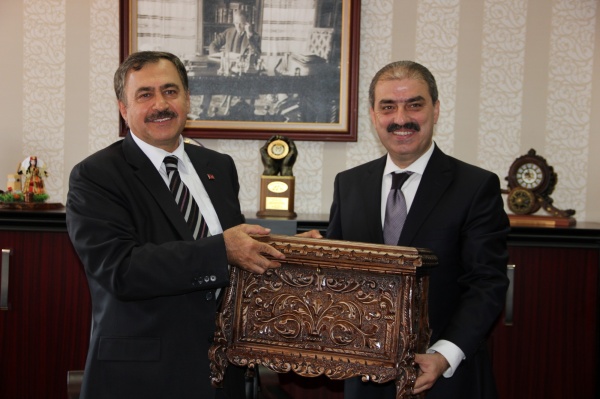Konuşmaların ardından Belediye Başkanı İrfan Dinç tarafından Bakan Eroğlu’na üzerinde yöresel motiflerin yer aldığı el yapımı sandık hediye edildi.