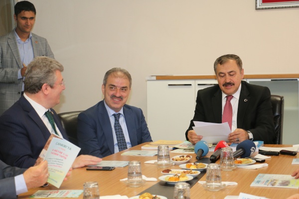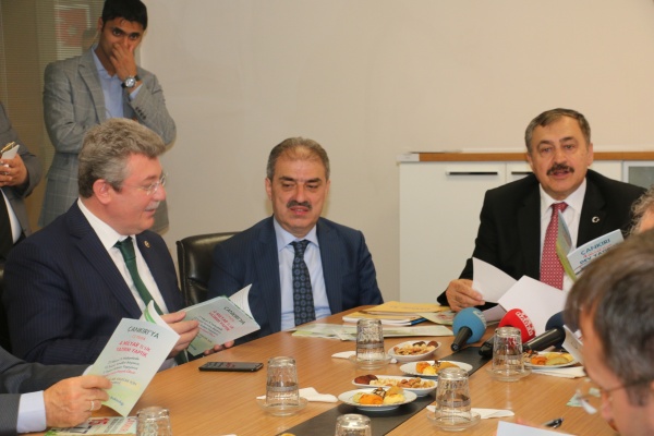 Belediye 4. katındaki toplantı odasında basın mensupları ile bir araya gelen Bakan Eroğlu toplantıya, dün Şırnak'ta şehit edilen Çankırılı Jandarma Astsubay Kıdemli Çavuş Serdal Candan Uyanık için başsağlığı dileyerek başladı.