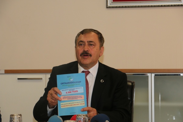 Orman ve Su İşleri Bakanı Veysel Eroğlu, Çankırı'nın da içinde bulunduğu Orta Anadolu illerini kapsayan Orta Anadolu Gelişim Planının hızla devam ettiğini belirterek "Bu gelişim planı ile 31 adet baraj,33 adet sulama tesisi, 7 adet içme suyu temin tesisi, 2 adet hidroelektrik enerji tesisi, 51 adet dere ıslah tesisi, 78 adet köprü, 1 adet atık su arıtma tesisi, 1 adet şehir ormanı, 36 adet ağaçlandırma ve ormancılık faaliyeti, 3 adet bal ormanı, 6 adet mesire yeri, 6 adet tabiat turizmi etkinlik alanı, 23 adet otomatik meteorolojik gözlem istasyonu yapılacak. Bu çalışmaların 2019 yılında tamamlanması hedefleniyor ve bu yatırımlar için harcanacak toplam tutar ise 35 milyar liradır" diye konuştu.