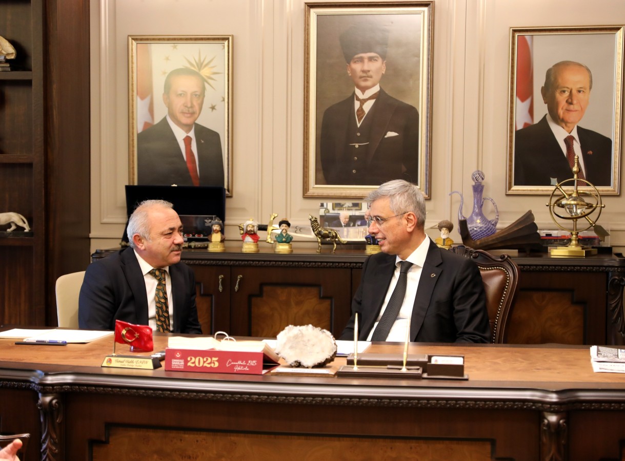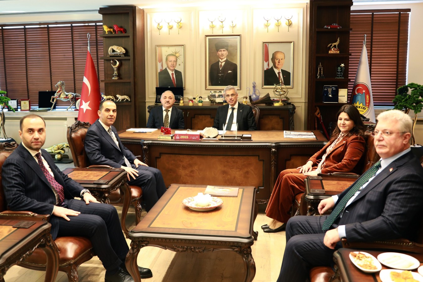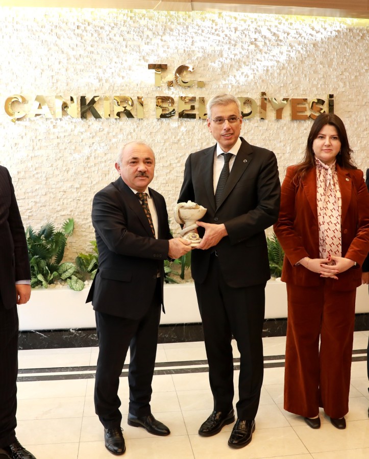 Başkanlık makamında devam eden görüşmelerde turizme açılan Yer Altı Tuz Şehri’nin sağlık turizmine kattığı değer de konuşuldu. Ziyaret sonunda Başkan Esen, Çankırı hatırası olarak tıp ve sağlık sembolü olarak tuzdan kadehe sarılmış yılan figürü hediye edildi.