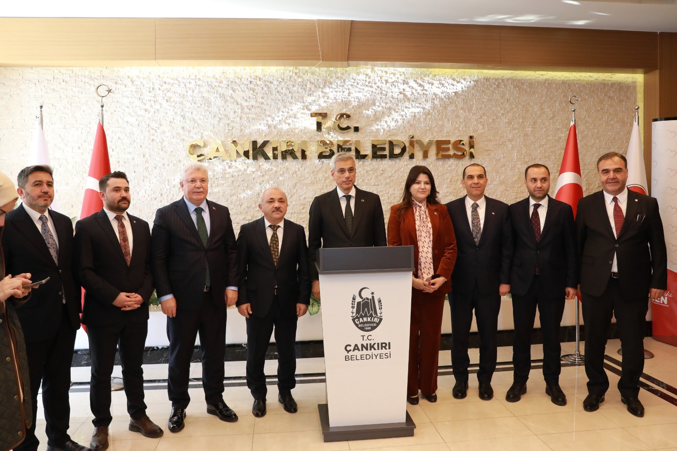 Bir dizi ziyaretler için Çankırı’ya gelen Prof. Dr. Kemal Memişoğlu, Çankırı Belediyesini ziyaret etti. Belediye Hizmet Binası önünde Belediye Başkanı İsmail Hakkı Esen beraberinde protokol tarafından karşılanan Bakan Memişoğlu, Başkanlık makamı önünde şeref defterini imzaladı. Bakan Memişoğlu, belediyenin hizmetlerinden ve sağlık turizmine verdiği desteklerden memnun kaldı.