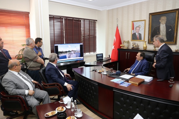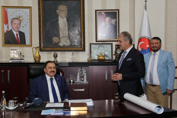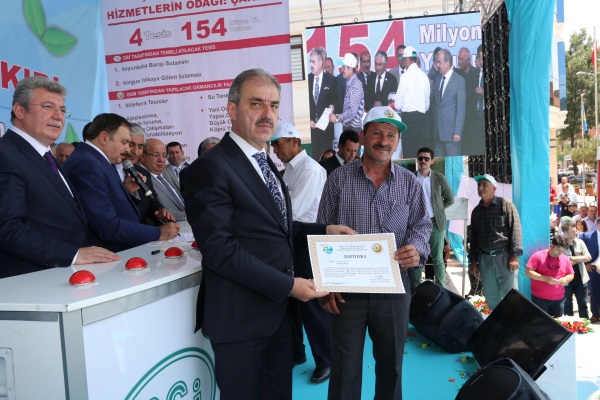 Başkanlık makamında Bakan Eroğlu’nu ağırlayan Başkan Dinç, “Çankırı’nın bakanı yok ama sayın bakanımız Çankırı’mızın her türlü sorununda bizlere yardımcı oluyor. Adeta Çankırımızın bakanı gibi. Kendisi ile gurur duyuyoruz ve kendisine Çankırılılar adına teşekkür ediyoruz.” diye konuştu. Bakan Eroğlu da Çankırı’ya her gelişinde büyük bir heyecan duyduğunu ve Çankırı’yı çok sevdiğini ifade ederek, Ak Parti dönemine kadar unutulan Çankırı’ya hem Ak Parti hükümetlerinin hem de Orman ve Su İşleri Bakanlığının büyük hizmetler yaptığını söyledi. Belediye Başkanı İrfan Dinç tarafından şehri ikiye bölen Tatlıçay için hazırlanan projenin görsel sunumu yapılarak proje için Bakan Eroğlu’dan destek istedi. Belediyenin anı defterini de imzalayan Bakan Eroğlu’na Başkan Dinç tarafından yörenin meşhur bakır “depne”si hediye edildi. Bakan Eroğlu daha sonra Belediyenin 4. katında bulunan toplantı salonuna geçerek basın mensuplarına temeli atılacak tesislerle ilgili bilgi verdi. Ormanları köylülerin hizmetine açma gayretinde olduklarına vurgu yapan Bakan Eroğlu “Önceden arıcıların ormanlara girmesi yasaktı. Şimdi bal ormanları yapıyoruz. Ormanlık alanlar artık köylülerimizin hizmetinde olacak. Ormanlar artık kırsal kalkınmanın lokomotifi olacak.” diye konuştu. 14 yılda Çankırı’ya 6 milyar liralık yatırım gerçekleştirdiğini belirten Bakan Eroğlu, temeli atılacak Koyunbaba Barajı’nın bölgede asırlık bir rüya olduğunu, projenin gerçekleşmesi ile 103 bin dekar alanın sulanabileceğini ve bölgeye hayat vereceğini söyledi. Korgun Yolkaya Göleti Sulama Projesi ile 4 bin dekar alanın suya kavuşacağını, Orman Genel Müdürlüğü tarafından da iki ayrı proje ile toplam 154 milyon liralık yatırımın gerçekleşeceğini ifade etti. Orman ve Su İşleri Bakanı Prof. Dr. Veysel Eroğlu basın toplantısının ardından Belediye Milli İrade Meydanı’nda toplanan kalabalığa da hitap ettikten sonra toplu temel atma törenini gerçekleştirdi. Temel atma töreninin ardından Orman köylülerine yangın söndürme çalışmalarında kullanılmak üzere tanker dağıtımı ve çeşitli meyve fidanlarından oluşan fidan dağıtımı gerçekleştirildi.