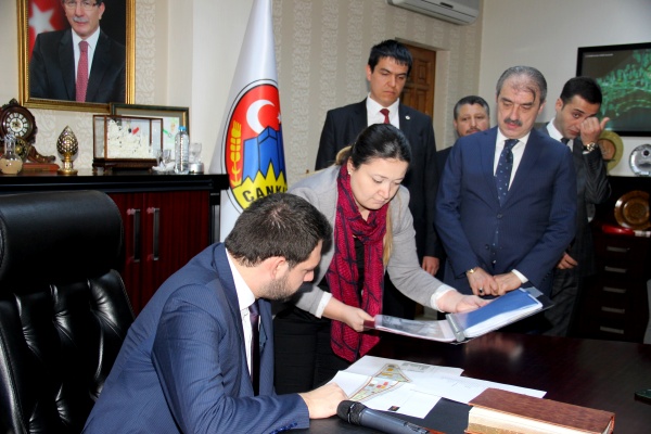 Tren Kütüphanenin açılışını gerçekleştiren Gençlik ve Spor Bakan Yardımcısı Abdurrahim Boynukalın, Belediye Başkanı İrfan Dinç’i makamında ziyaret etti. Bakan Yardımcısı Boynukalı’nı “Havası en temiz şehir Çankırımıza hoş geldiniz.” diyerek karşılayan Başkan Dinç, hizmet verdiği 12 yıllık süreçte Çankırı için gerçekleştirdiği kalkındırma çalışmalarından bahsetti. Vizyon projeleri arasında yer alan ve 7’den 70’e herkesi kapsayan Spor Kompleksi’nin detaylarını da anlatan Dinç, Gençlik ve Spor Bakanlığından projelerine destek istedi. Boynukalın, ailelerinden tutun da çocuklarına kadar düşünülmüş projelerin son noktaya kadar getirilmesi için bütün desteklerini vereceklerine söz verdi. Spor Kompleksinin eşi benzeri olmayan bir proje olduğunu belirten Boynukalın, projenin Türkiye’de örnek gösterileceğini söyledi. Memnuniyetini dile getiren Dinç, “Çankırı, böyle bir projeyi çoktan hak etti. Bu projeyi kazandırdığımızda, şehrimiz için yine çok büyük bir iş yapmış olmanın gururunu yaşayacağız. Türkiye’de böyle bir kompleks yok. Bu projemiz gerçekleştiğinde tüm ailelere spor yaptıracağız.” dedi.