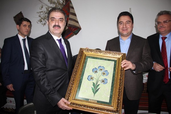 Vali Vahdettin Özcan, Akparti Çankırı Milletvekilleri İdris Şahin ile Hüseyin Filiz ve Çankırılı olan İzmir Ak Parti Milletvekili Nesrin Ulema’nın da katıldığı tarihi mekanlar gezisinde Belediye Başkanı İrfan Dinç tarafından Başbakan Yardımcısı Ali Babacan’a ebru tablosu hediye edildi. Başbakan Yardımcısı Ali Babacan, öğle yemeği ikram edilen tarihi Çamaşırhane ve Buğday Pazarı Medresesindeki restorasyon ve kentin tarihi kültürel değerlerine sahip çıktığı için Belediye Başkanı İrfan Dinç’i tebrik etti.