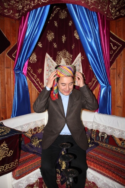 Belediye Başkanı İrfan Dinç ve eşi Zeynep Dinç tarafından Buğday Pazarı Medresesi’nde misafir edilen Babacan burada başağa köşesine oturtulup, başağa fesi giydirildi. “Buraya oturan para veriyor mu?” diye espri yapan Başbakan Yardımcısı Babacan’a Belediye Başkanı İrfan Dinç “Siz ancak şeref verirsiniz Sayın Başbakan Yardımcım” karşılığını verdi.