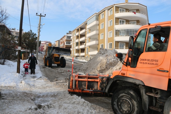 Sabah 4 sularında başlayan kar yağışının ardından ekipleri tekrar organize ettiklerini belirten Belediye Fen İşleri Müdürü Serdar Bahçeci, “ Gün itibari ile yaklaşık 10 cm kar yağışı almış durumdayız. İlimiz 15 gündür son 10 yılın en yoğun kar yağışını almaktadır. Toplam kar yüksekliği 50–60 cm civarını buldu. Ekiplerimiz, 7/24 esasına dayalı olarak 15 gündür aralıksız çalışıyor. Bu kapsamda kaldırım temizliği, tuzlama çalışmaları ve kar kütlelerinin taşınması işlemleri devam ediyor. İlimizin farklı mahallelerinde, Abdulhalik Renda Mahallesi, Yenimahalle, Aksu Mahallesi, Cumhuriyet Mahallesi, Buğday pazarı Mahallesi, Esentepe, Fatih Mahallesi, Karatekin ve Karataş Mahalleleri ve Kırkevler Mahalleleri başta olmak üzere, şu anda kapalı yolumuz bulunmamaktadır. Kaldırım temizliği çalışmalarımız, yaklaşık 200 kişilik ekiplerimiz ile devam ediyor. Meteoroloji tarafından Balkanlardan bir kar dalgasının geldiği ve dolayısı ile kar yağışının devam edeceği bildirildi. Çankırı Belediyesi olarak ekip ve ekipmanlarımız ile yeni kar dalgasına da hazırız. 2 adet tuzlama ve kar küreme kamyonumuz, donanımlı traktörümüz, 5 adet beko kepçemiz ve işçilerimiz ile birlikte olası kar yağışlarına karşı hazırlıklıyız. Hem eğitimin aksamaması hem de araç sürücüleri ve yaya güvenliğinin sağlanması açısından gerekli donanıma sahibiz. Karla mücadele çalışmalarında Fen İşleri, Su ve Kanalizasyon, Park ve Bahçeler ile Temizlik İşleri Müdürlükleri olmak üzere dört müdürlüğün ekipleri ile koordineli çalışıyoruz. Belediye Başkanımız İrfan Dinç’in araç filomuzu yenilemesi bu çalışmaları daha da etkin kıldı. Karla mücadele çalışmalarımız tüm hızıyla devam ediyor.” diyerek basın mensuplarını bilgilendirdi.