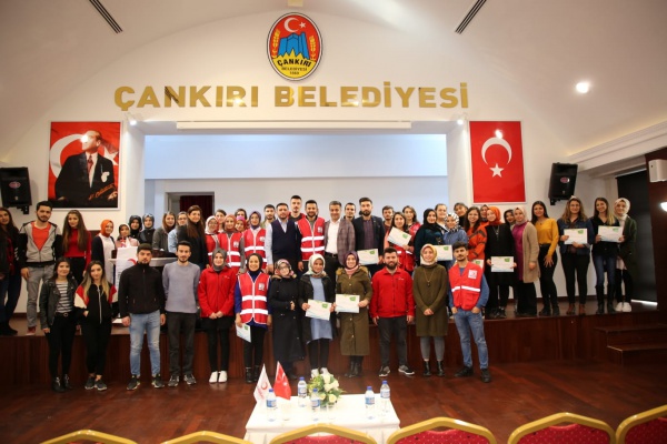 Türk Kızılayı, Çankırı’daki Genç Kızılaycılara afetlerden korunma ve ilk yardım konularında bilinçlendirme eğitimleri verdi. Eğitime katılan gençler, Çankırı Belediyesi Astarlızade Sabiha Anne Kadın Eğitim Kültür Merkezinde düzenlenen törende sertifikalarını aldı. Törene katılan Başkan Hüseyin Boz, insanlara yardım edebilmek için sorumluluklar alan ve eğitimlere katılan Genç Kızılay ekibini tebrik ederek çalışmalarında başarılar diledi.
