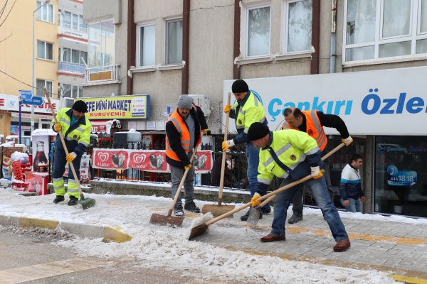 24 saat kesintisiz görev yapan 20 kişilik tuzlama ekibinden ve kaldırım temizliğinde görevli 120 kişiden oluşan karla mücadele ekipleri 2 adet kar küreme kamyonu, 1 adet kar küreme traktörü, 2 adet greyder, 5 adet bekoloder ile Çankırı sokaklarında karla mücadeleye devam ediyor. Cadde, sokaklar ve ara yollarda buzlanmaya karşı tuzlama çalışması yapan ekipler, yayaların ulaşımda sıkıntı yaşamaması ve yürümekte zorlanmamaları için kaldırımları da temizliyor. Karla mücadele ekiplerini ziyaret ederek çalışmaları yerinde takip eden Belediye Başkanı Hüseyin Boz, çalışmalar kapsamında şu ana kadar yaklaşık 400 ton tuz ve solüsyon kullanıldığını söyleyerek öncesinde gerekli hazırlıklarını tamamlamış olan belediye ekiplerinin kar yağışının ardından teyakkuza geçerek çalışmaları aralıksız sürdürdüklerini belirtti. Boz, kar yağışını Çankırı halkının olumsuzluklar yaşadığı değil keyif aldıkları bir an olarak yaşamalarını ve hatırlamalarını istedikleri için ekiplerin de yoğun mesai harcadığını ifade etti.