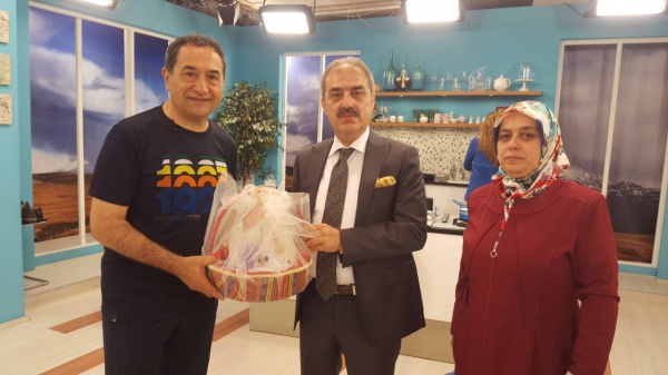 Programın sonunda Başkan Dinç, Dr. Feridun Kunak'a yöresel ürenlerimizi ve tuz lamba hediye etti.