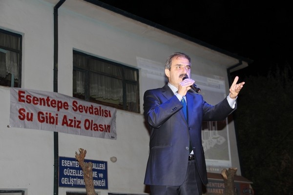 Yıllardır su sıkıntısı yüzünden perişan olduklarını fakat bu sıkıntının kökten hallolduğunu ifade eden Esentepe Mahallesi Muhtarı Muammer Gökçe: “ Bu gün Esentepe’de müstesna bir gün yaşanıyor. Esentepe’miz için hiçbir fedakârlıktan kaçmayan Belediye Başkanımız İrfan Dinç ve ekibi mahallemize teşrif ettiler bizimle buluştular. Sayın Başkanım, 600 yıllık geçmişi olan ve bu zaman zarfında canımıza tak eden su problemini kökten çözdüğünüz için size ve ekibinize teşekkür ediyorum. Hayati önem arz eden bu hizmetinizi hiçbir zaman unutmayacağız. Başkanım; su gibi ömrünüz olsun, su gibi aziz olasın” dedi.