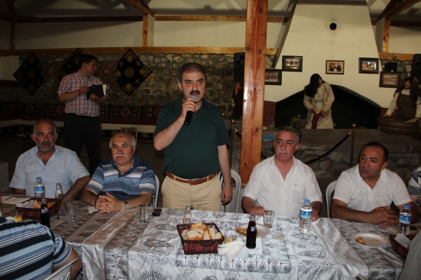 Demircilik ve bakırcılık mesleğinin yaşatılmasının ve yapılan ürünlerle pazardaki hak ettiği yerini almasının önemine vurgu yapan Başkan Dinç, “ Sanatınız bizim için çok kıymetli. Lakin, artık kalaycılık bitti. Sadece bakır kalaylayarak bu mesleği yaşatamazsınız. Kültürümüzün gelecek nesillere aktarılması, üzerinde durduğumuz bir konu. Ben Belediye Başkanı olarak, bu sanatımızın yaşatılması için her türlü fedakarlığı yapmaya hazırım. Sizlerin, ürün yelpazenizi değiştirmeniz ve kendinizi yenilemeniz gerekiyor. Bu mesleği zamana da uydurarak, hediyelik ürünler üretin. Size söz veriyorum, siz geliştirin, bu ürünlerin altı ay boyunca alıcısı ben olacağım. Gelen misafirlerimize ürünlerinizi hediye edeceğim, yeter ki size teşvik olsun. Tuz lambasını nasıl bir sektör haline getirdiysek, sizin ürünlerinizi de sektör haline getirerek bu mesleklerin yeniden doğuşunu sağlamak istiyoruz. Ayrıca aranızdan seçeceğiniz beş kişiden bir heyet oluşturun. Bana isteklerinizi, nerede ve kaç m2’lik alanda istihdam edilmek istediğinizi bildiren bir çalışma yapın, biz de sizinle ilgili projemizi bu istekler yönünde belirleyelim. Bu konuyla ilgili bir geçiş süreci yaşamaktayız. Sonuçta, sizi memnun edecek bir çalışma sunma isteğimizden dolayı sizleri buraya davet ettik. Hep birlikte, el ele çalıştığımız sürece, halledemeyeceğimiz sorun yok. Biraz siz, biraz da biz fedakarlık ederek en iyisini yapacağımıza inanıyorum.” dedi.