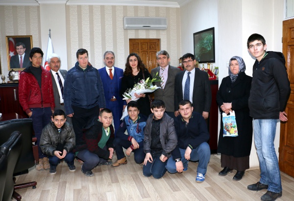 Ziyaret sonunda özel öğrenciler, sohbet etmek için geldikleri Başkan Dinç’e çiçek takdim ederek hatıra fotoğrafı çektirdi.