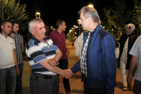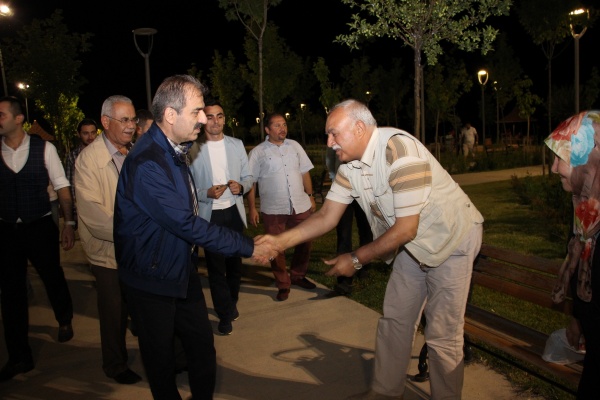 Havaların da ısınması ile birlikte Çankırı’nın en büyük parkı Recep Tayip Erdoğan Parkı, iftar vaktinin ve iftar sonrasının tercih edilen noktalarından biri oldu. Dün akşam mahalle iftarının merkeze uzak bir bölgede kurulması sebebi ile vatandaşlar, bu kez iftar vakti parktaki kameriyeleri doldurdu. İftar sonrasında ise vatandaşlar, çay keyfi, sohbet ve teravih namazı için Recep Tayyip Erdoğan Parkı’nı tercih etti. İftar programının ardından Recep Tayip Erdoğan Parkı’na geçen Belediye Başkanı İrfan Dinç, vatandaşlarla sohbet etti. Aileleri ile birlikte parka gelen çocukların Dinç’e gösterdiği ilgi gözlerden kaçmadı. Park içerisinde bulunan namazgâh ise açık havada sunduğu rahatlık nedeni ile kadın- erkek birçok vatandaşın rağbet gösterdiği ibadet yeri oldu.