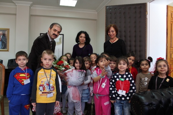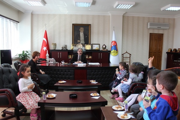 125. Yıl Anaokulunun minik öğrencileri, öğretmenleri eşliğinde Belediye Başkanı İrfan Dinç’i makamında ziyaret etti.