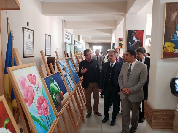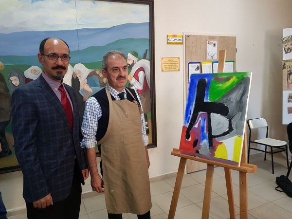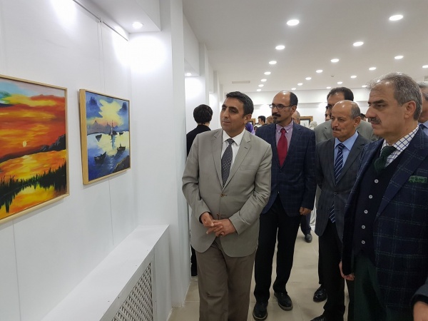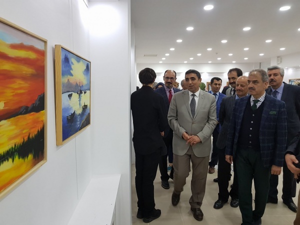 Sergiye eşi Zeynep Perihan Dinç ile birlikte katılan Belediye Başkanı İrfan Dinç, 72 eserin yer aldığı sanat galerisini gezdi. Dinç, öğretmenlerden ve eser sahiplerinden tek tek bilgi aldı.