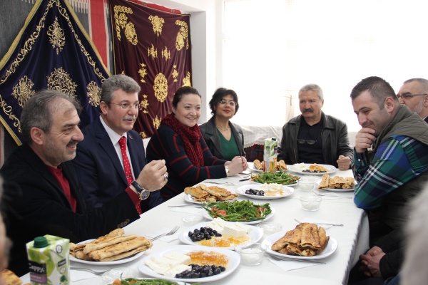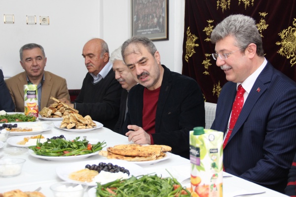 Milletvekili adayı Muhammet Emin Akbaşoğlu'nun katıldığı toplantıda Yukarı Çarşı esnafının sorunları ele alındı. Esnaflar adına konuşan Arif Astarlıoğlu, Büyük Camii'de devam eden yenileme çalışmalarının uzadığını ve bu durumun esnafı mağdur ettiğini söyledi. Belediye'nin Yukarı Çarşı ve imarette uygulamayı planladığı çalışmalara hız verilmesini isteyen Astarlıoğlu, bölge esnafının sorunları ile yakından ilgilenen Başkan Dinç'e teşekkür etti.