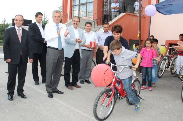 Çocuklarla yakından ilgilenen Vali Özcan ve Başkan Dinç, onlarla bol bol sohbet etti. Bahçede sıra sıra dizilmiş bisikletleri gören çocukların heyecanı görülmeye değerdi. Daha sonra bisikletlerine binen çocuklar sevinç içinde protokolün önünde tur attılar. Başkan Dinç’in tur atan çocukları uzun uzun izlemesi ise gözlerden kaçmadı. Çocuklar, aldıkları bu güzel hediyeden dolayı teşekkürlerini Başkan Dinç’e sarılarak ve yanaklarından öperek gösterdiler.