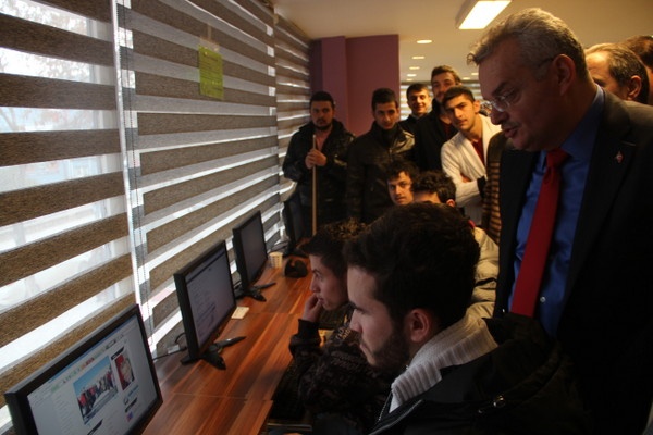 Belediye Başkanı İrfan Dinç eşliğinde tanıtım ve incelemesi yapılan Eğitim ve Kariyer Merkezinin öğrenciler için hazırlanan uygun koşulları, Vali Vahdettin Özcan’ı şaşırttı. Dışarıdan bakıldığında bu kadar güzel ve konforlu görünmediğini dile getiren Vali Vahdettin Özcan “Burada öğrencilere sağlanan imkânlar çok güzel. Başkanımız yine iyi bir iş çıkarmış.” dedi. Daha sonra öğrencilerle sohbet eden Vali Özcan, onları küçük bir imtihanla test etti. Soruyu doğru yanıtlayan ÇABEM öğrencileri, sınavdan önce Vali Özcan’dan tam not aldı. ÇABEM tarafından düzenlenen “Kariyer Günleri”nde misafir konuşmacı olarak katılacak Vali Özcan, üzerinde kendi fotoğrafının da yer aldığı afişi görünce çok beğendi ve yanında fotoğraf çektirdi.