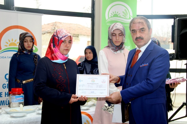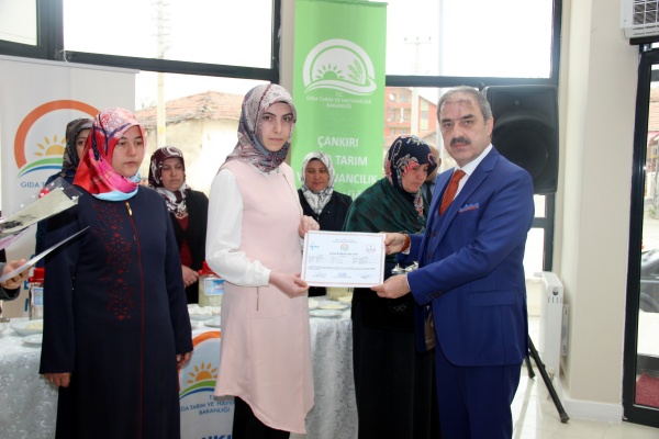 Çankırı’da yerel yönetim kamu kurum ve kuruluşlarının ortak girişimi ile başlatılan süt ürünleri ve peynir yapımı kursunu başarı ile tamamlayan kursiyerler sertifikalarını aldı.