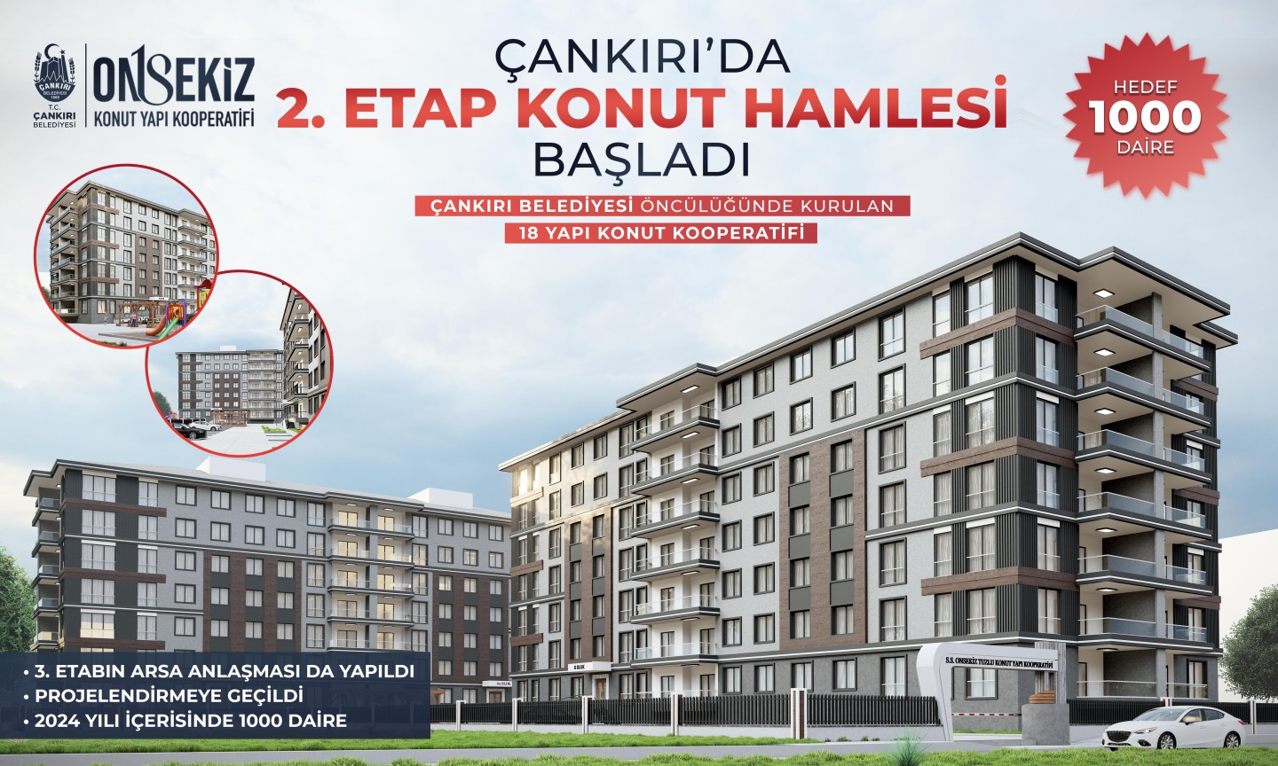 Çankırı Belediyesinin öncülük ettiği 18 Konut Yapı Kooperatifi bünyesinde başlatılan konut hamlesinde ilk beton döküldü. Çankırı Belediye Başkanı İsmail Hakkı Esen, Yapraklı Tuzlubağları mevkiinde ikinci etap kooperatifine de başlamak üzere olduklarını ve üçüncü etap kooperatifin arsa anlaşmasını tamamlayarak proje aşamasına getirdiklerini belirterek 2024 yılı içerisinde kooperatif bünyesinde 1000 konuta başlayacaklarını söyledi. Bölge sakinleri ile MHP Genel Başkan Yardımcısı ve Çankırı Milletvekili Pelin Yılık’ın da katıldığı tören, dualar ve alkışlar eşliğinde gerçekleştirildi.