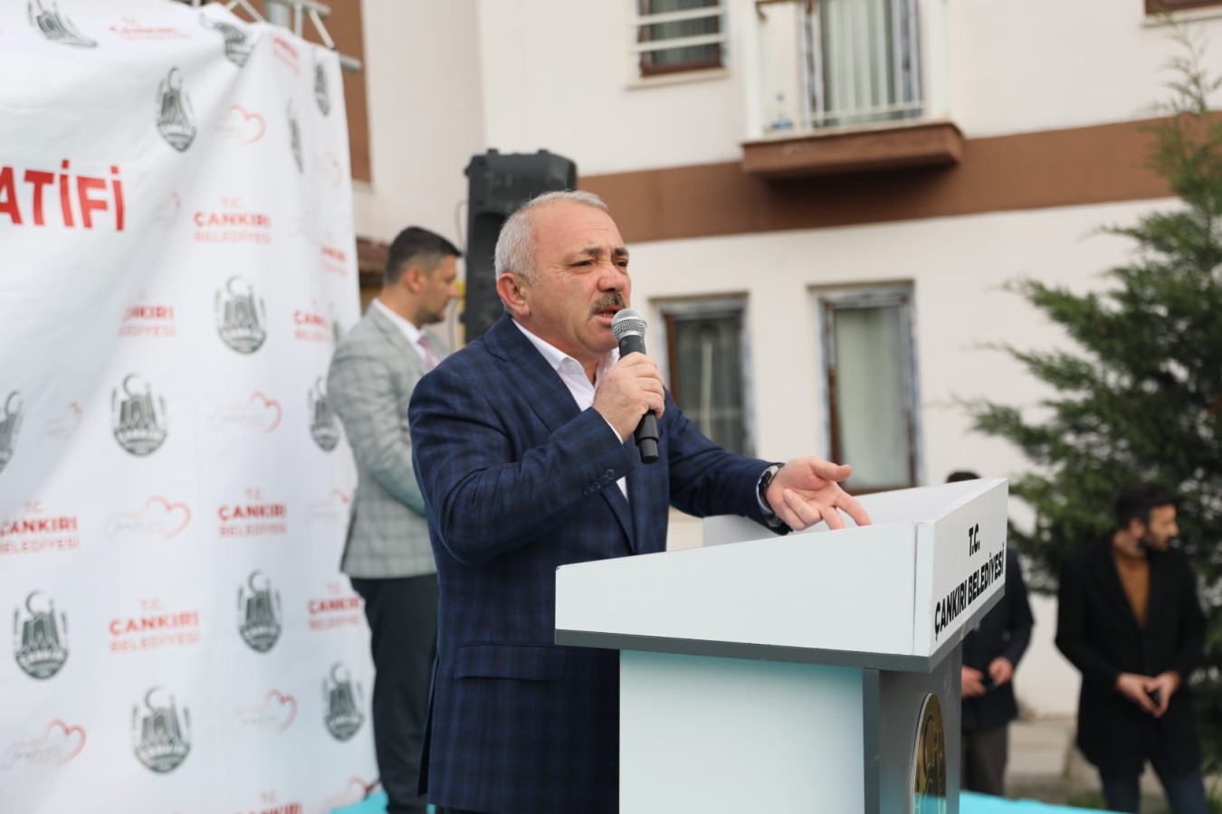 Açılış konuşmasını yapan Çankırı Belediye Başkanı İsmail Hakkı Esen, “Beş yıl önce önemli bir hedef koyduk önümüze. Çankırı’yı yaşam standardı yüksek, ekonomik ve ucuz bir şehir haline getirebilmek. Malum, dünya ekonomisindeki dalgalanmalar bizi de etkiledi. Hizmet vermek için alım yaptığımız her şeyin fiyatı 10 katına, 20 katına çıktı. Biz yine de hayallerimizden vazgeçmedik. Belediyemiz öncülüğünde 18 Konut Yapı Kooperatifinin kurulmasını sağlayarak şehrimizde uygun fiyatlarla konut hamlesini başlattık. Kooperatifimizin başında da yetenekli arkadaşlarımız var. En kısa süre içerisinde konutları hak sahiplerine teslim etmek için çalışıyorlar, sorunları ivedilikle çözüyorlar. Allah nasip ederse ailelerimizi kısa zamanda sıcak yuvalarına kavuşturacağız.” dedi.